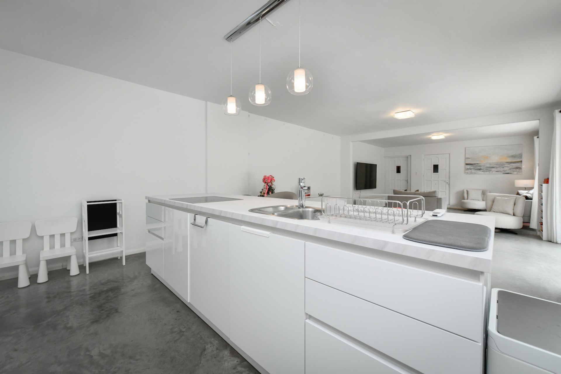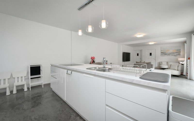 Attached to the hallway of the villa, you’ll find the apartment, which is located on the ground floor. The apartment features 3 bedrooms, 2 bathrooms, a brand-new kitchen, and a spacious living and dining room.