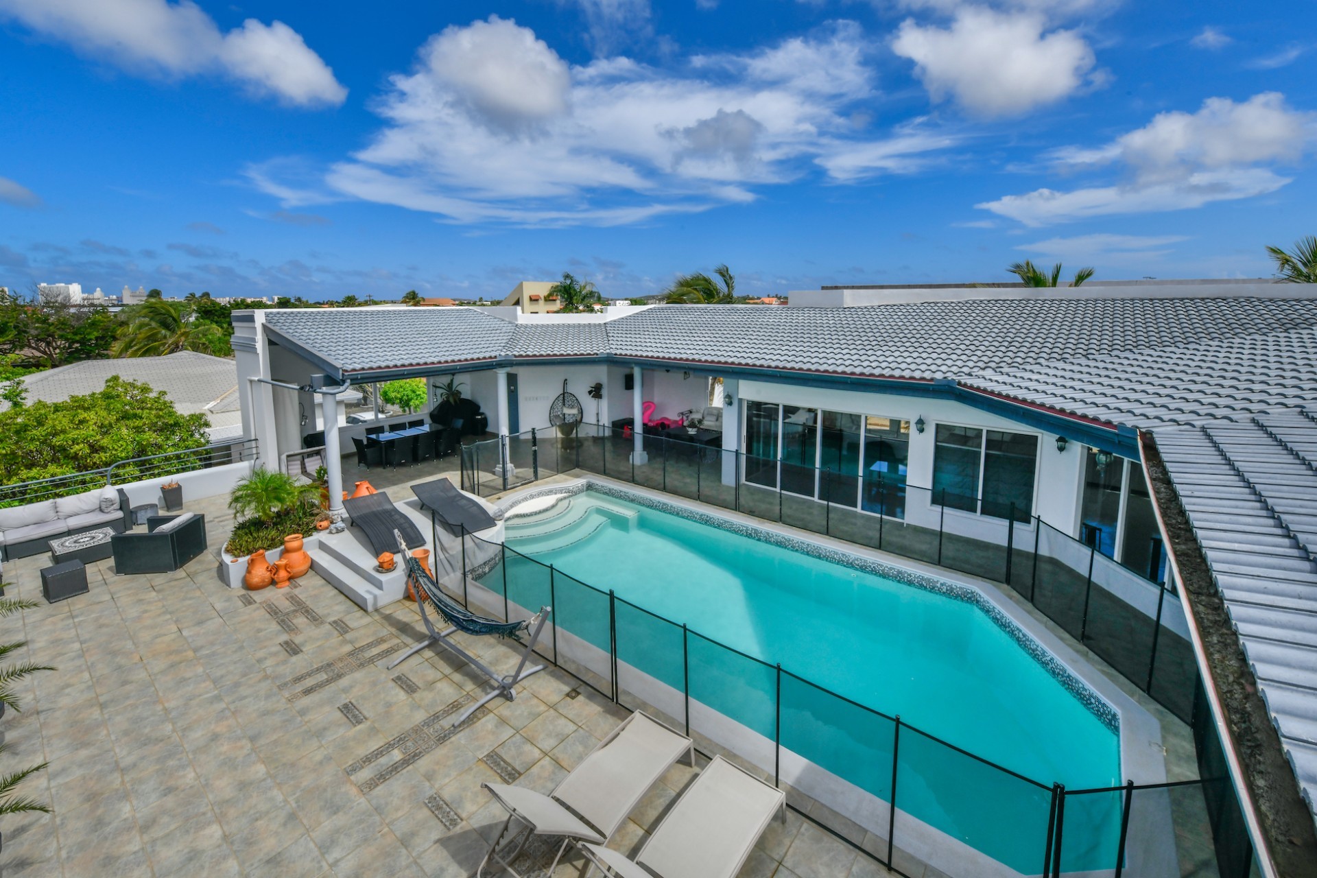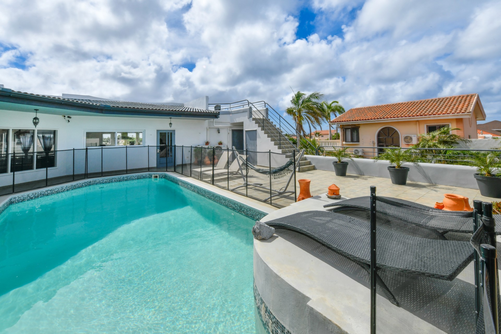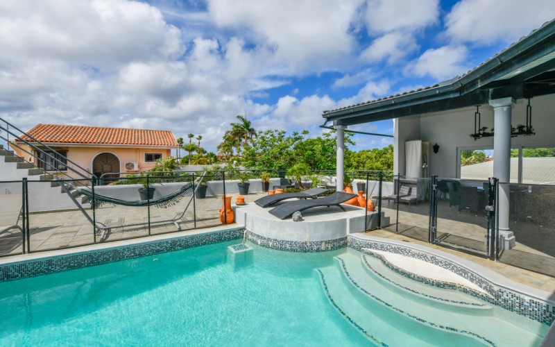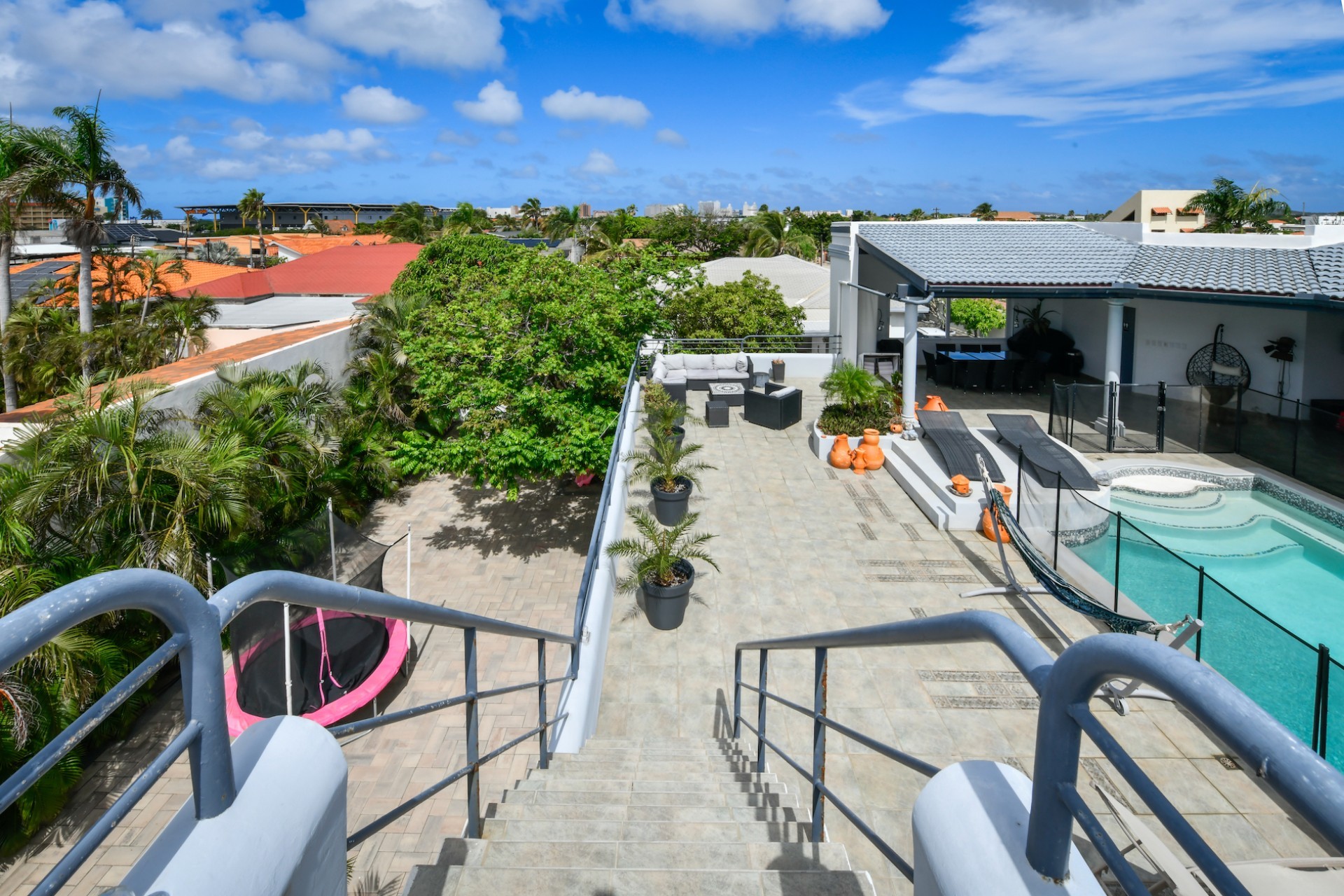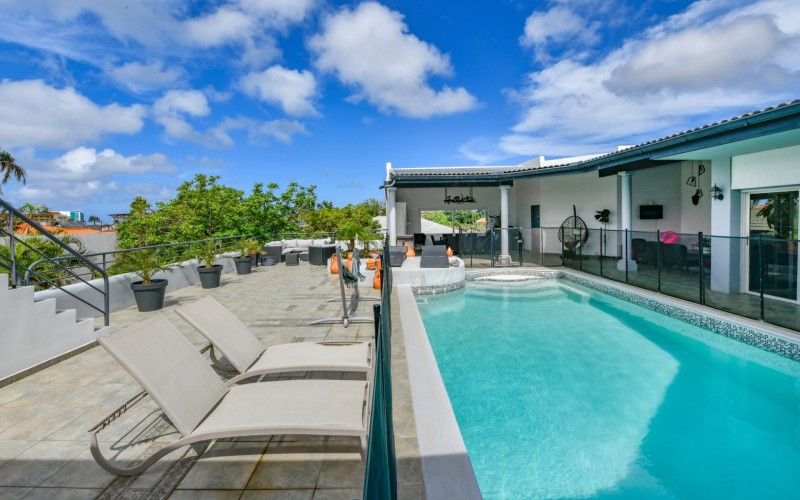 A true highlight of this property is the 50m² pool located on the first floor, surrounded by a beautiful patio with stunning views of the entire island. An added bonus is the sun terrace on the second floor, perfect for enjoying Aruba’s sunny weather.