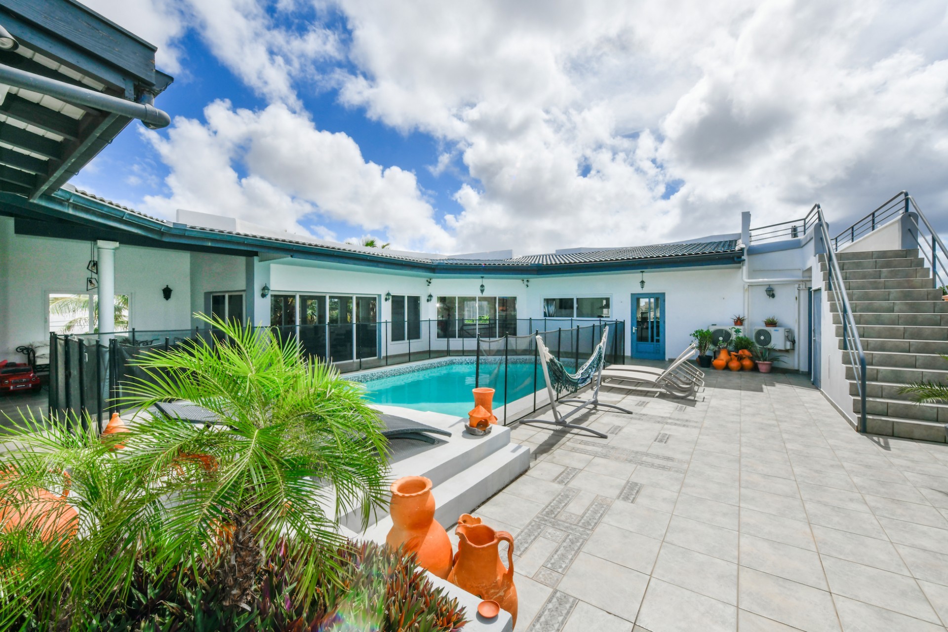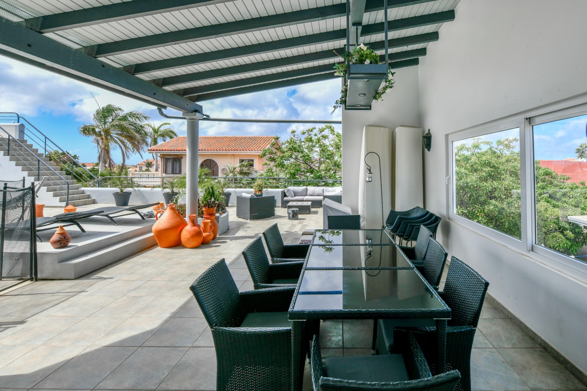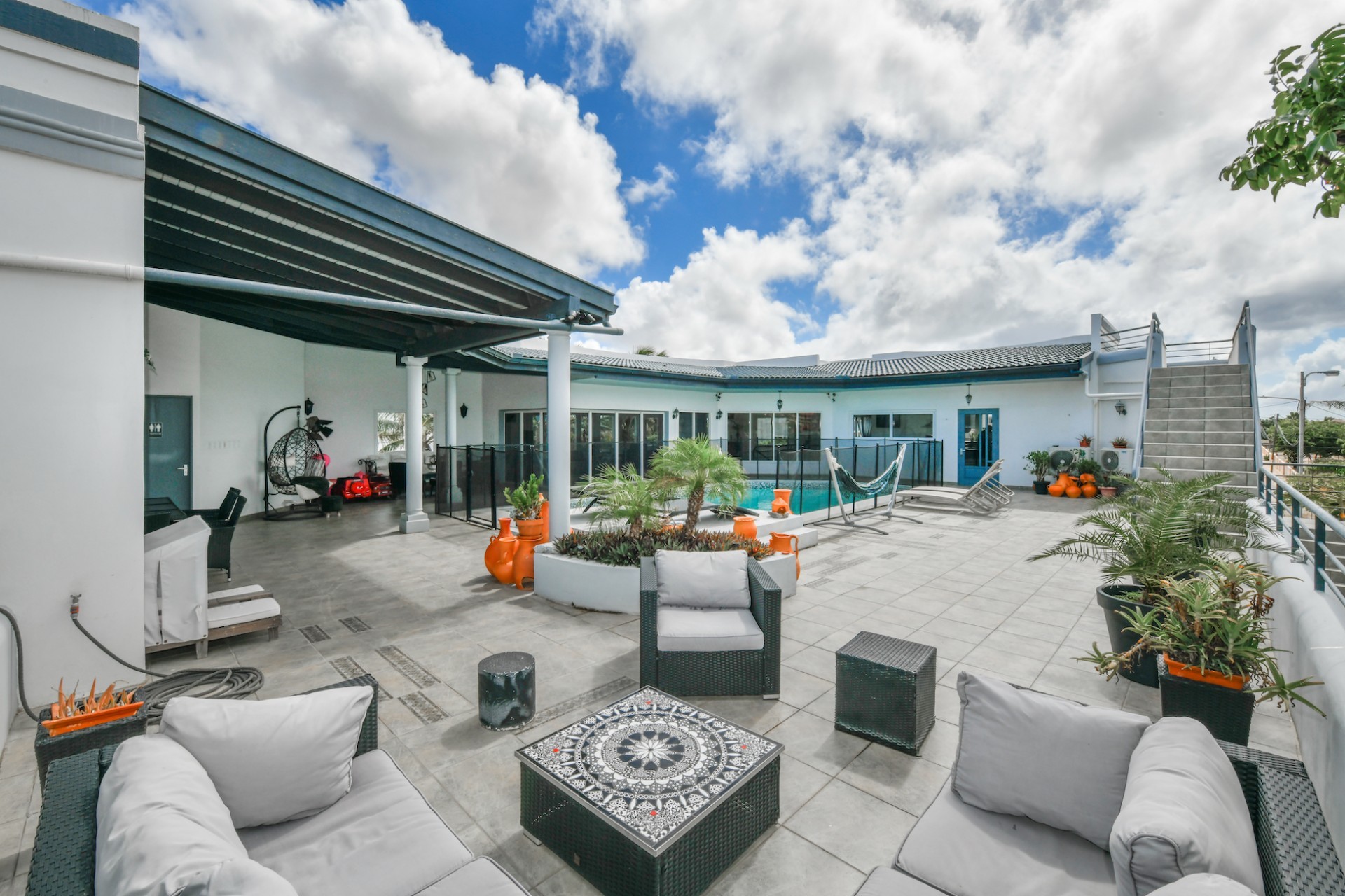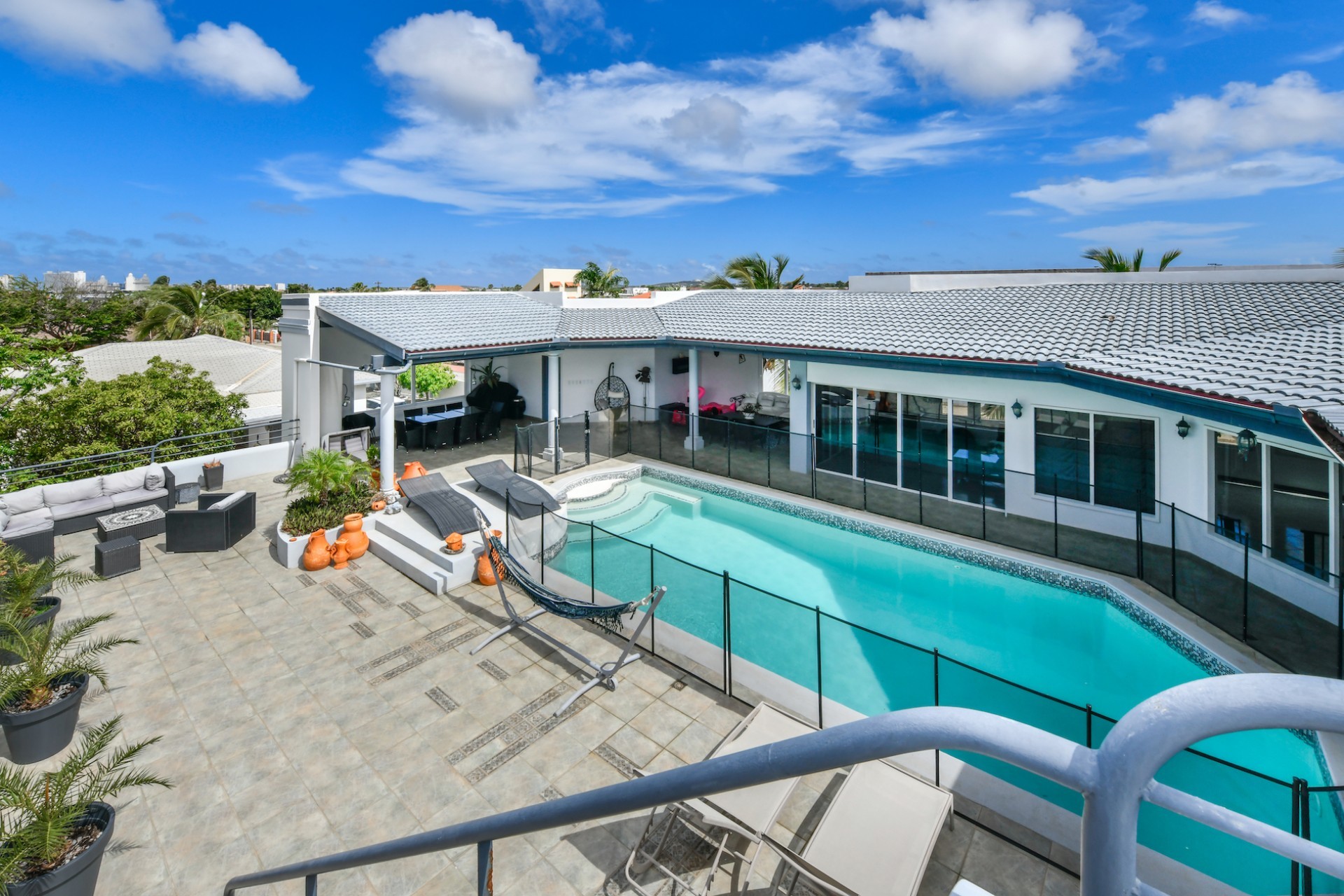 A true highlight of this property is the 50m² pool located on the first floor, surrounded by a beautiful patio with stunning views of the entire island. An added bonus is the sun terrace on the second floor, perfect for enjoying Aruba’s sunny weather.