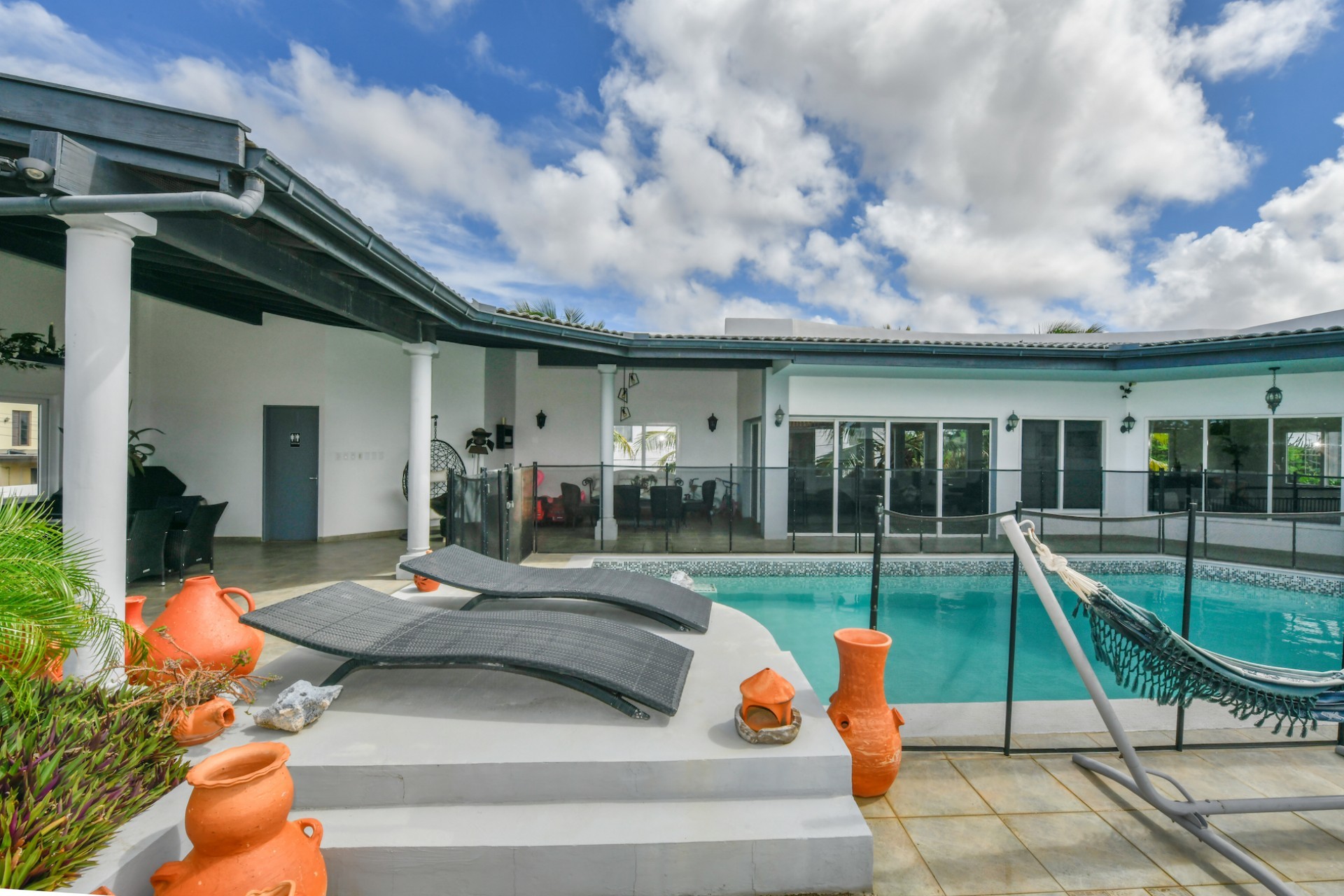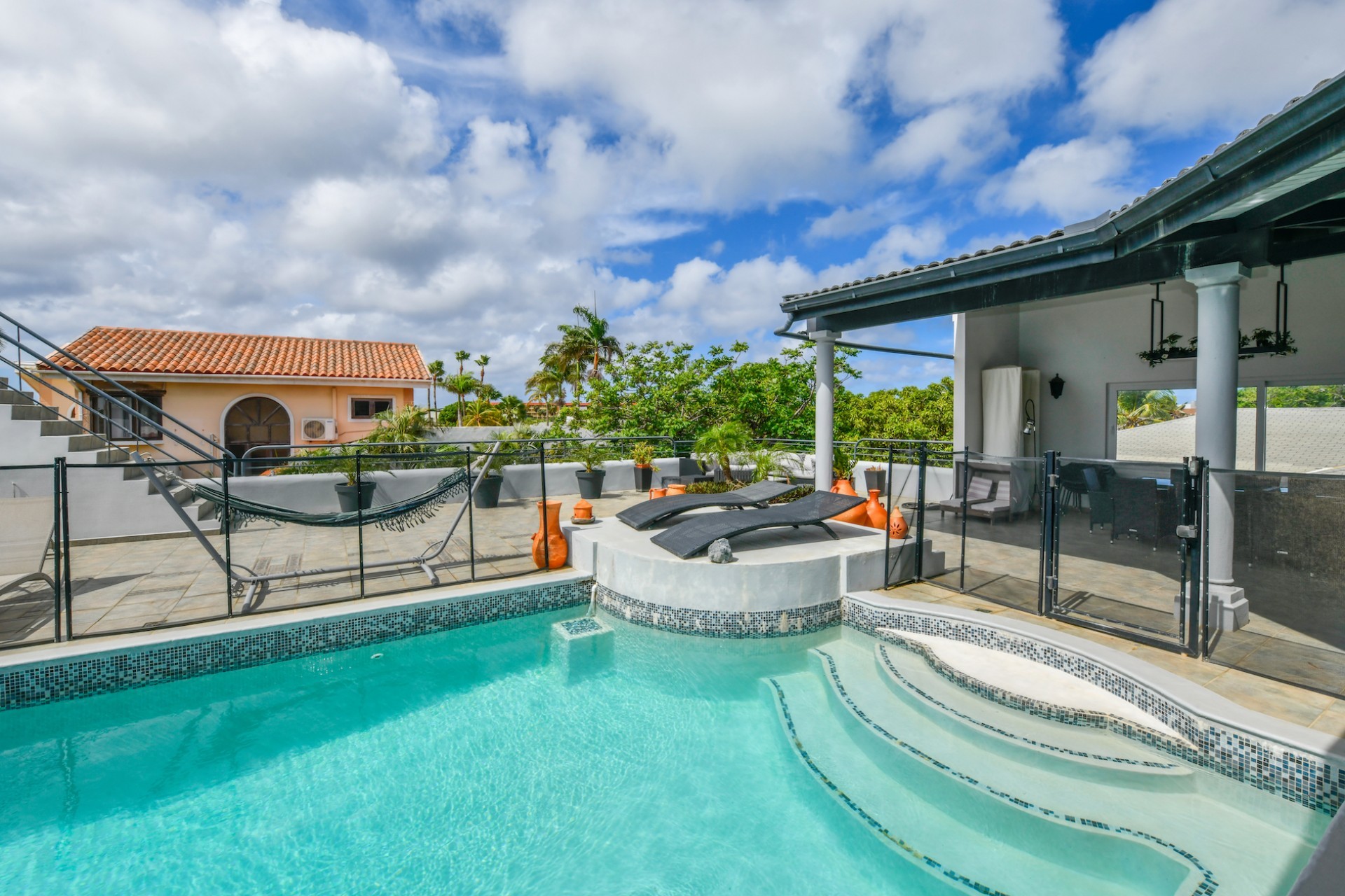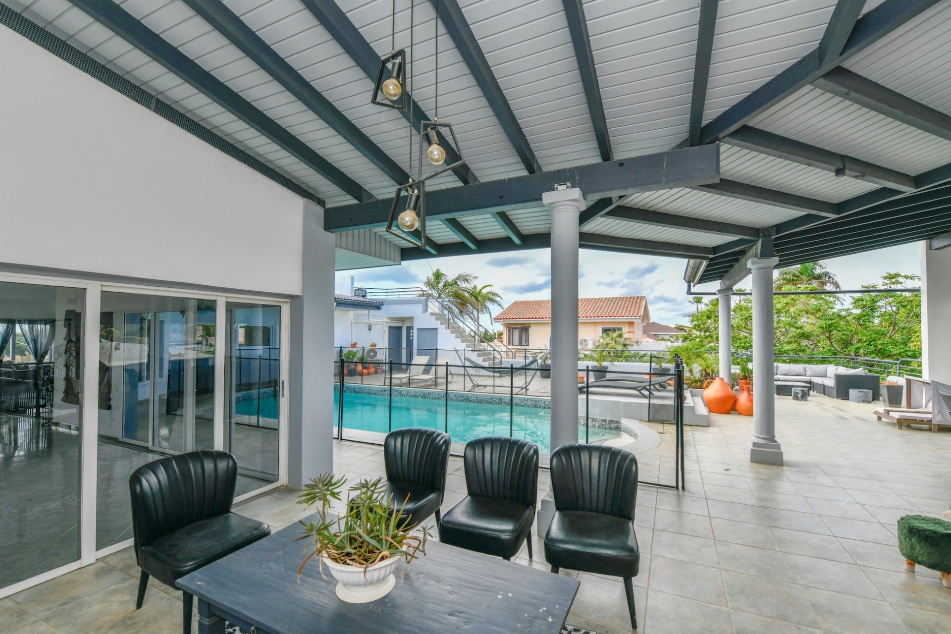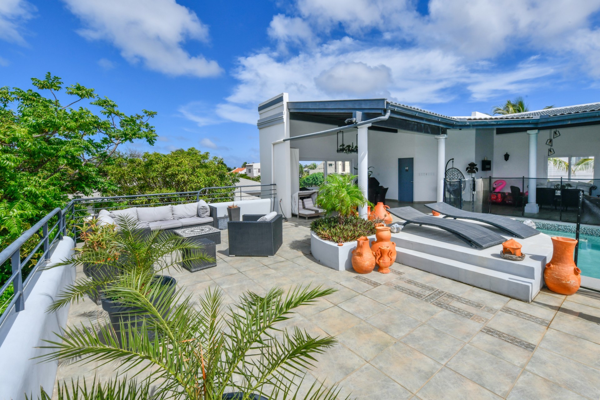 A true highlight of this property is the 50m² pool located on the first floor, surrounded by a beautiful patio with stunning views of the entire island. An added bonus is the sun terrace on the second floor, perfect for enjoying Aruba’s sunny weather.