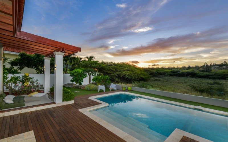 This stunning modern 3 bedroom 3,5 bathroom villa seamlessly blends comfort, privacy, and the natural beauty of Aruba.