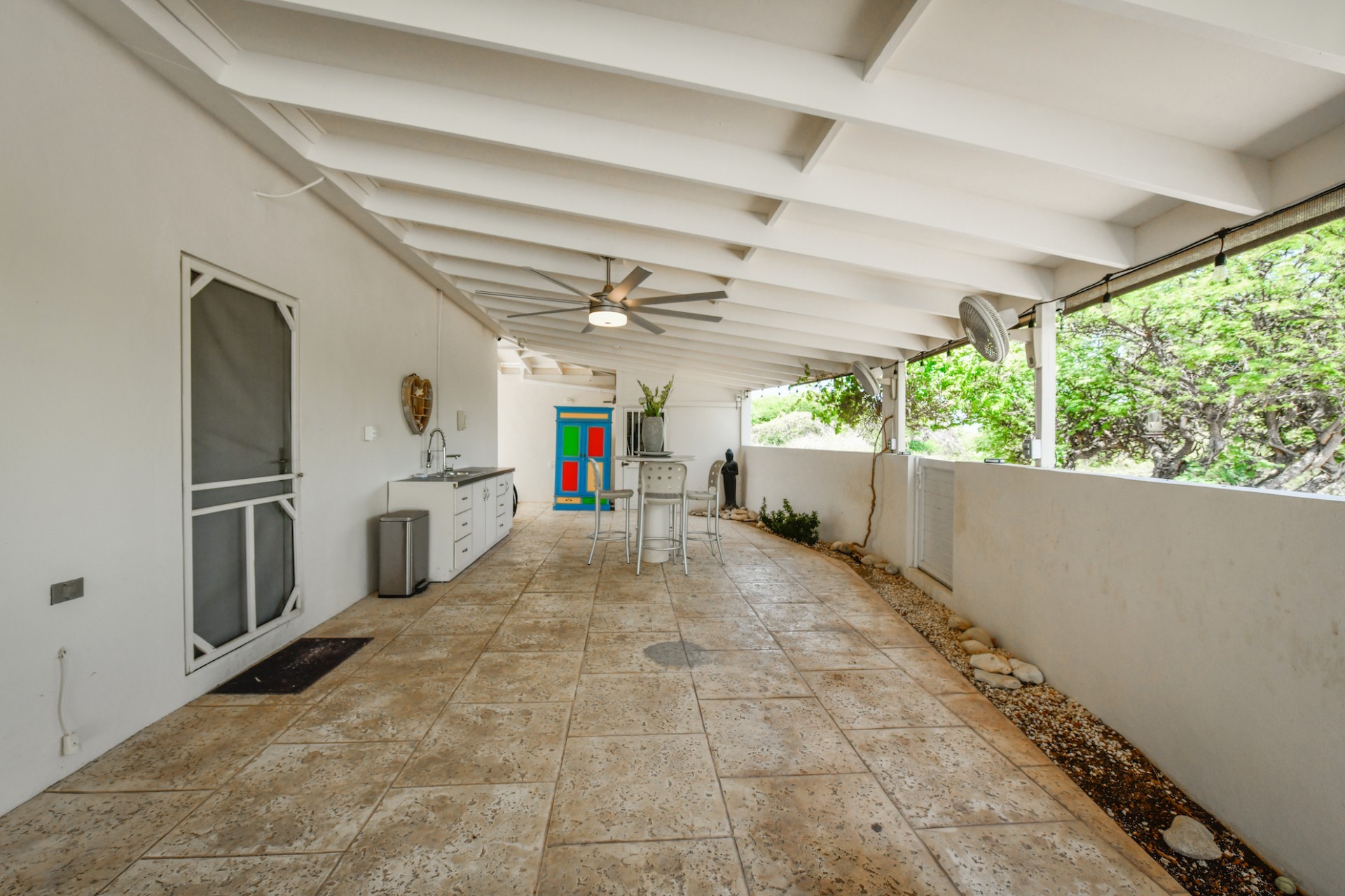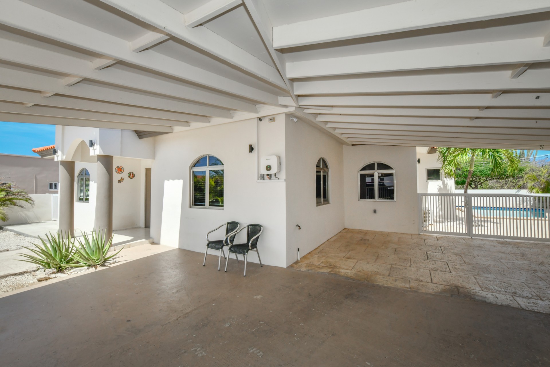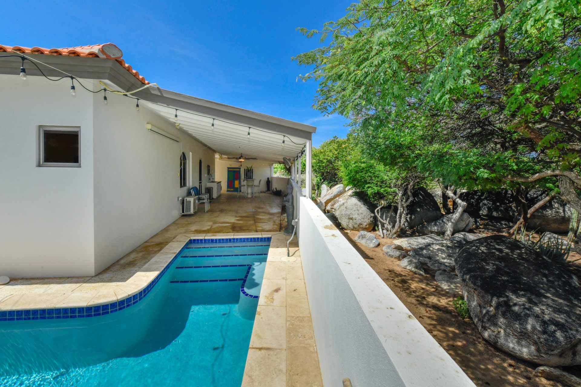 Outside, the spacious backyard is made for relaxation, with a large patio, laundry area, outdoor kitchen, and a beautiful pool to enjoy Aruba’s warm climate. The natural landscape behind the home adds both privacy and great views. The property also includes a carport and solar panels for added convenience and sustainability.