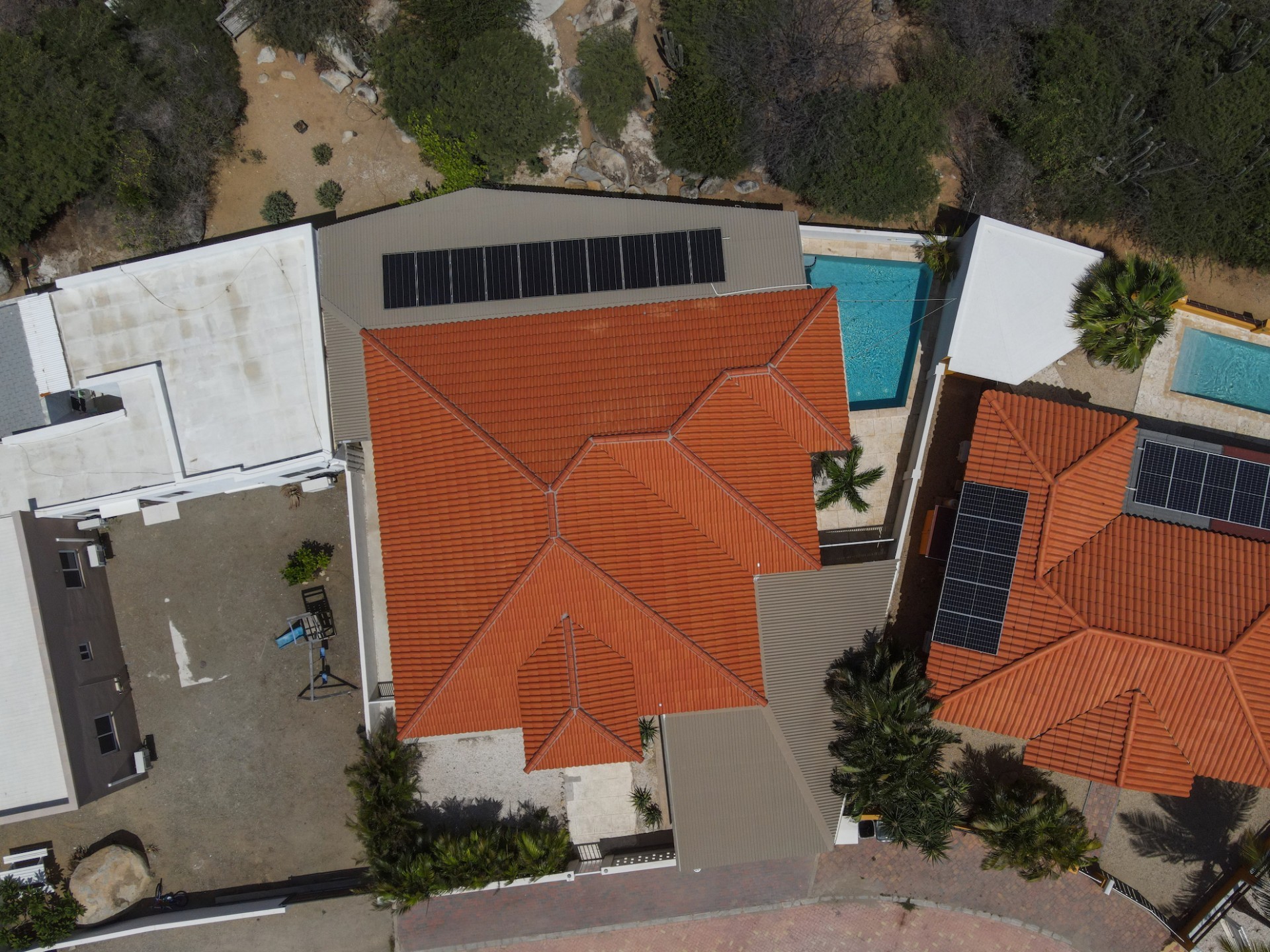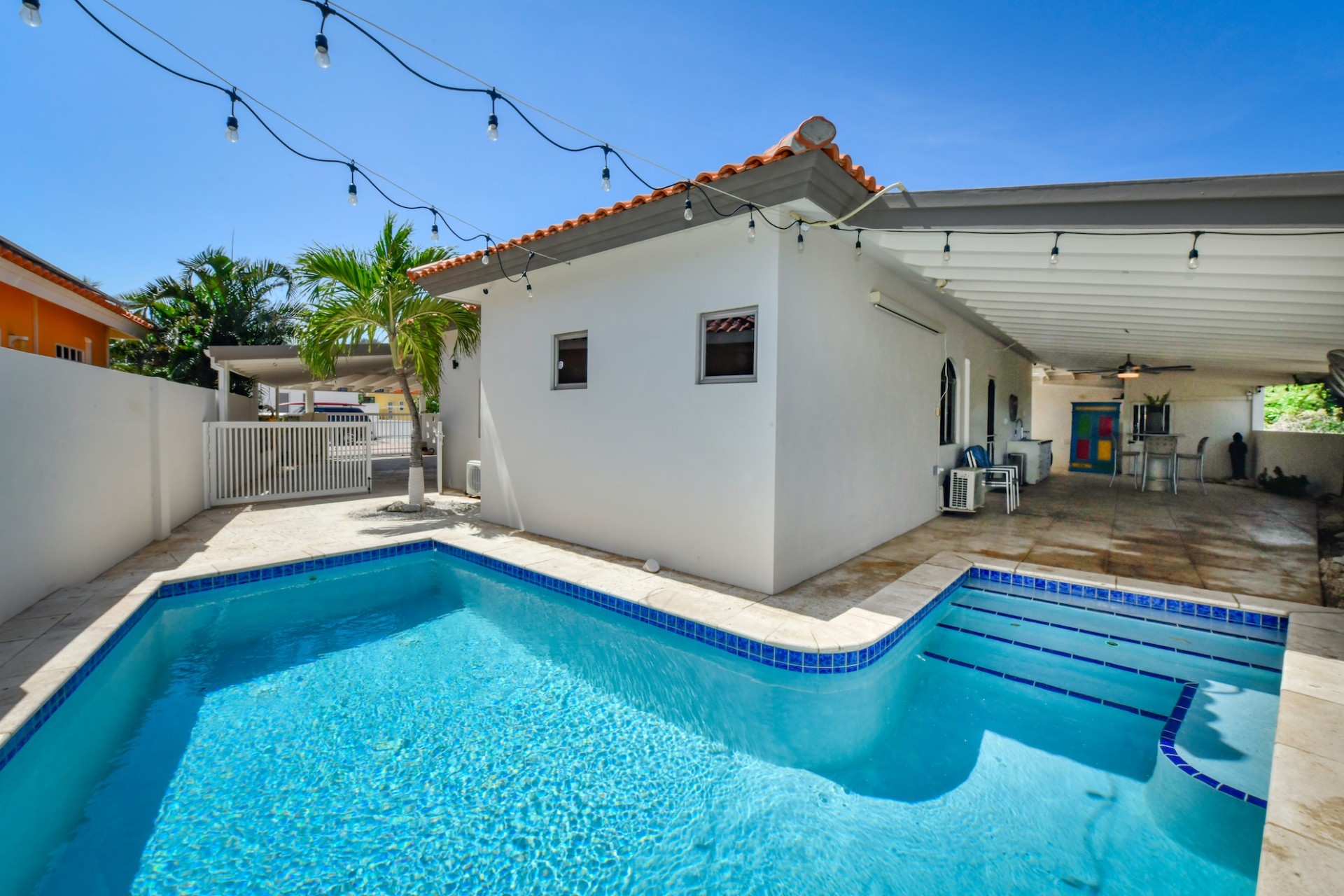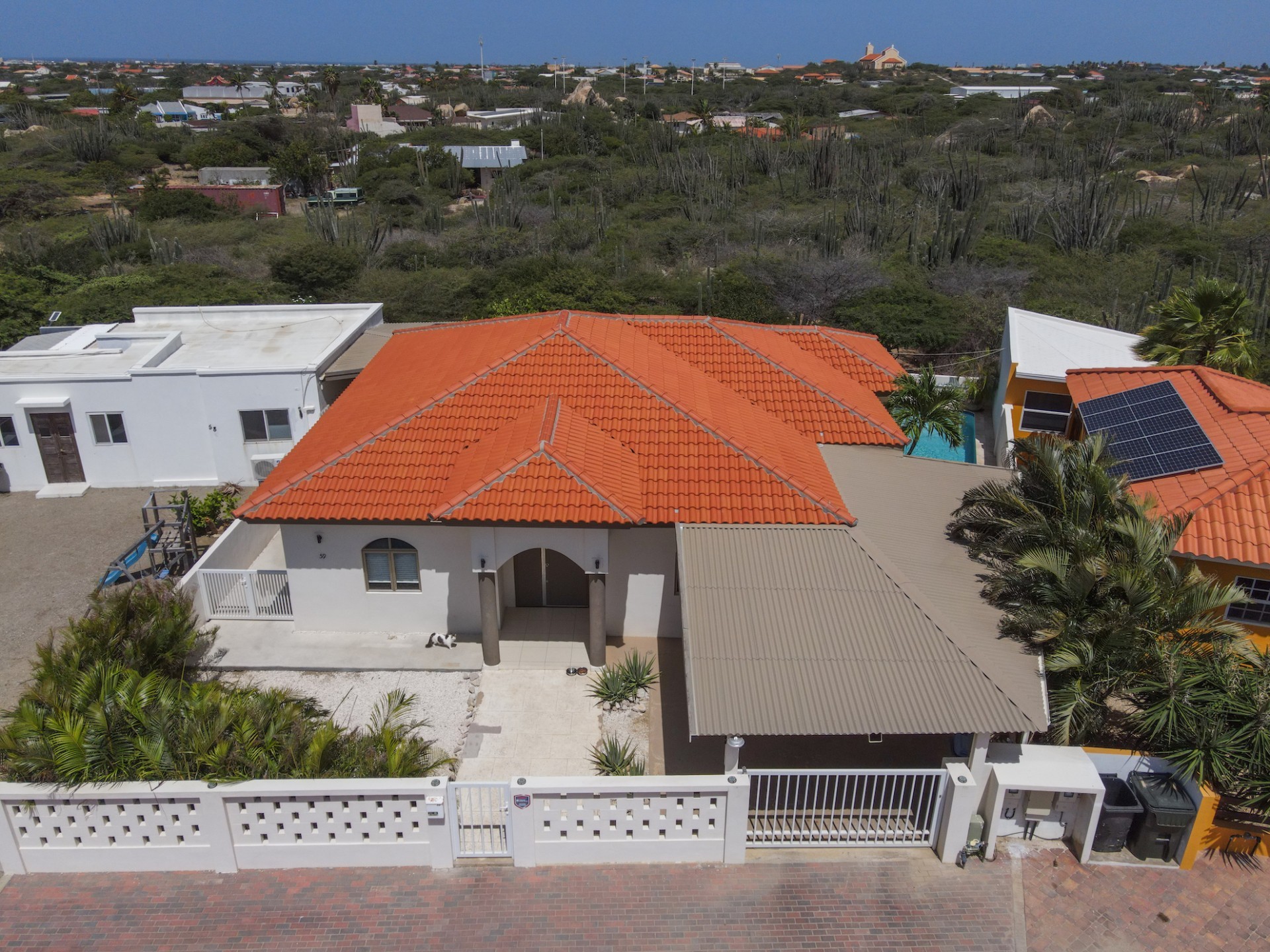 Outside, the spacious backyard is made for relaxation, with a large patio, laundry area, outdoor kitchen, and a beautiful pool to enjoy Aruba’s warm climate. The natural landscape behind the home adds both privacy and great views. The property also includes a carport and solar panels for added convenience and sustainability.