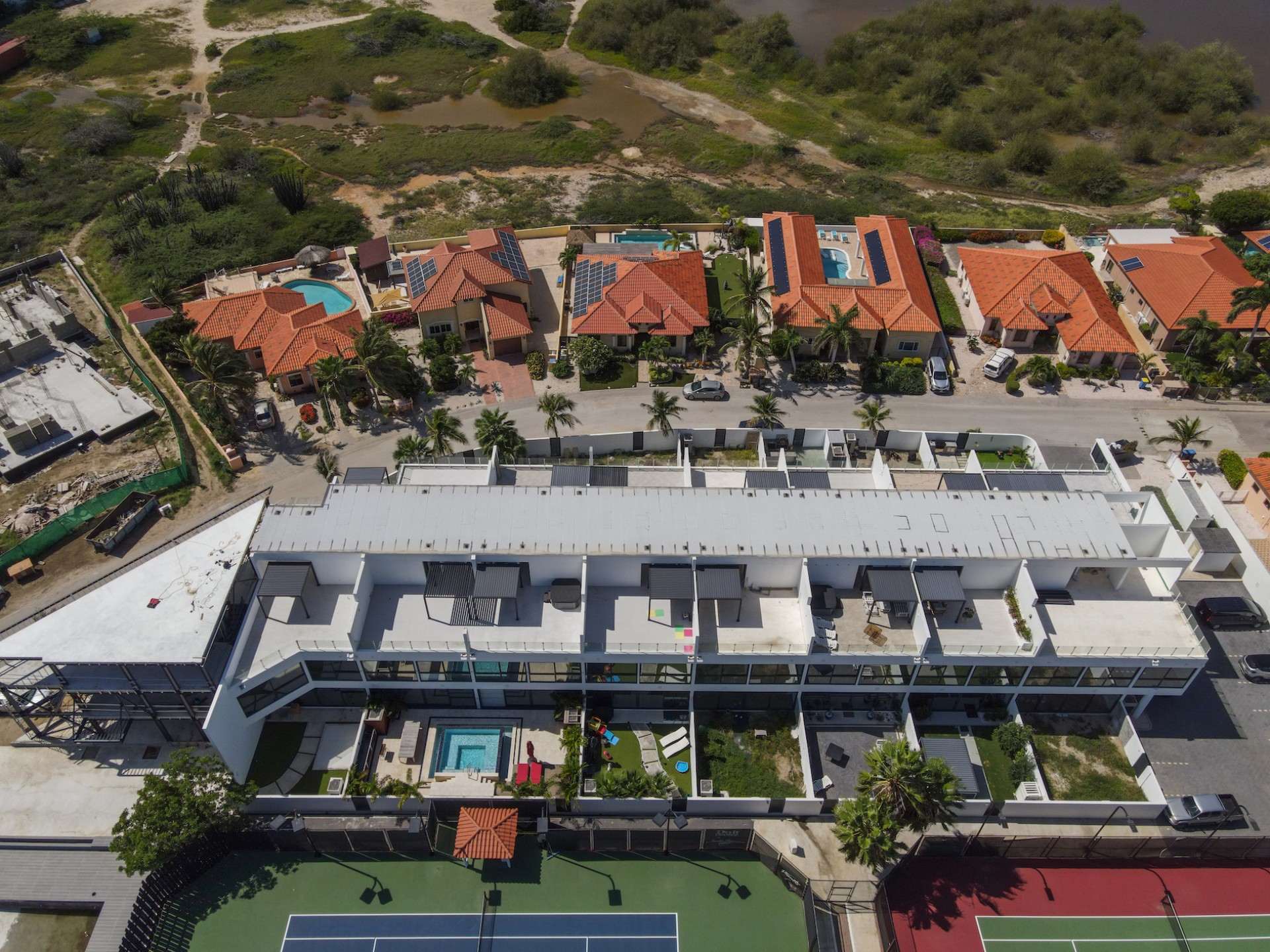 The Daher Residence is built on the premises of Aruba’s only private country club “Aruba Racquet Club” with only 15 residences, it was designed for the Sports Enthusiast in mind to live in luxury and privacy.