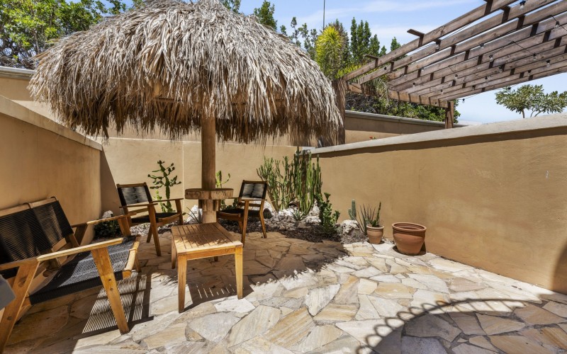The garden has been beautifully landscaped and features a charming palapa—a true island touch—providing the perfect spot to relax, entertain, or dine al fresco in your own tropical retreat. For added convenience, the ground floor also includes a guest bathroom, laundry area, and a dedicated owner’s closet.