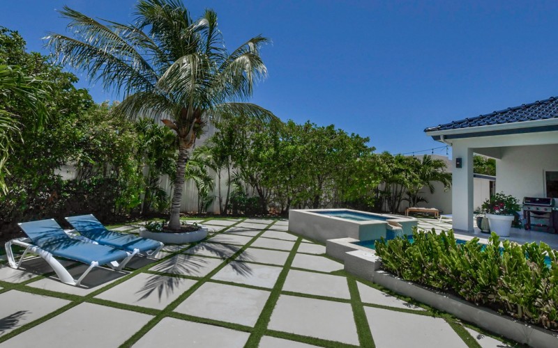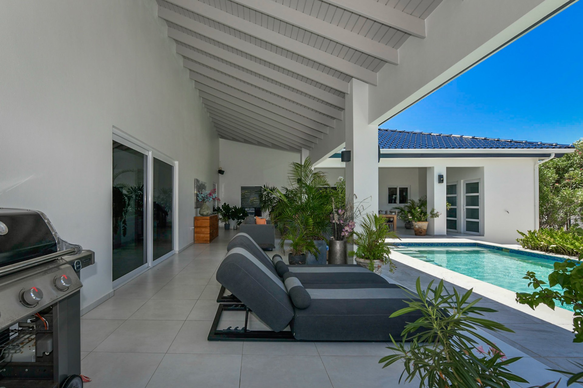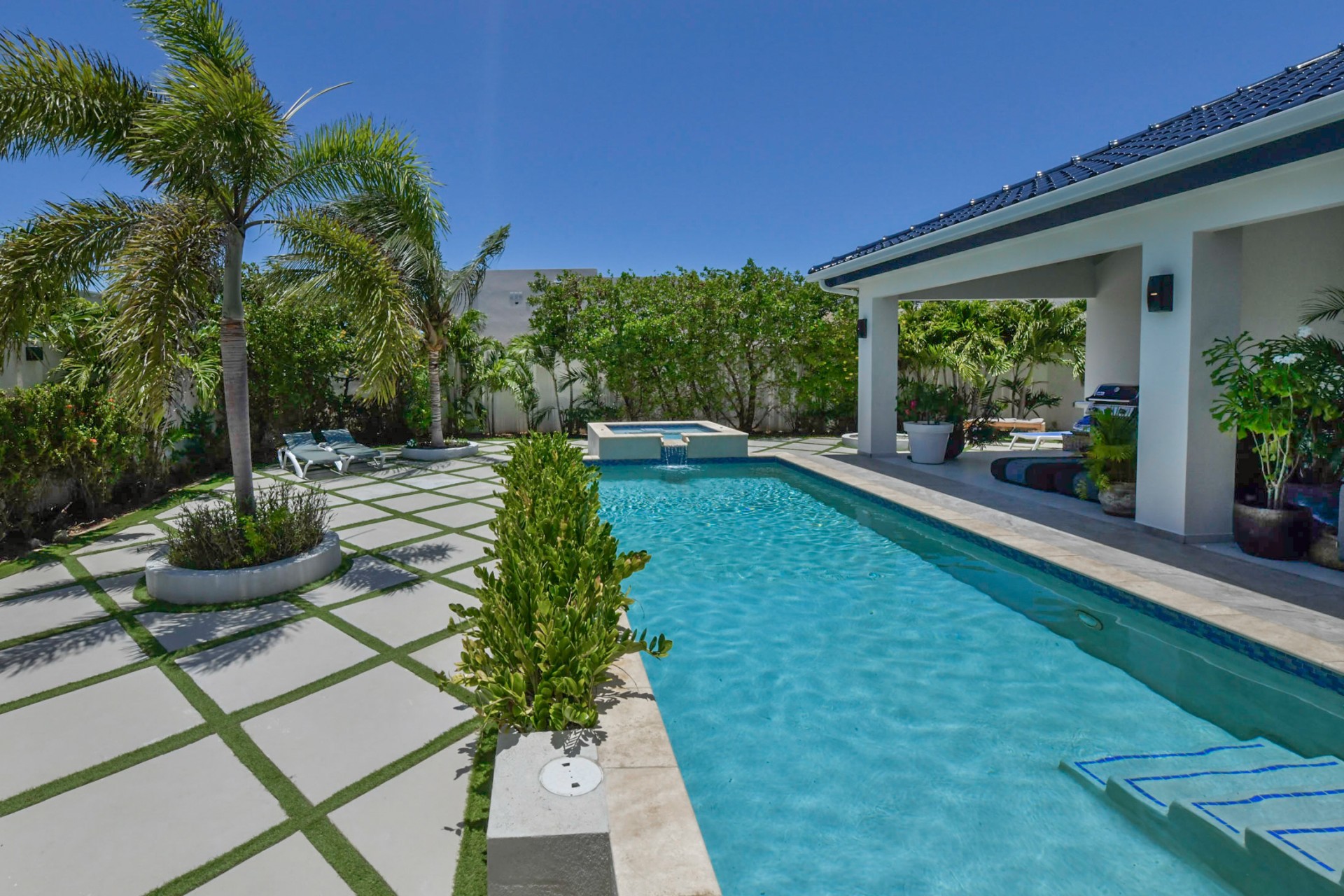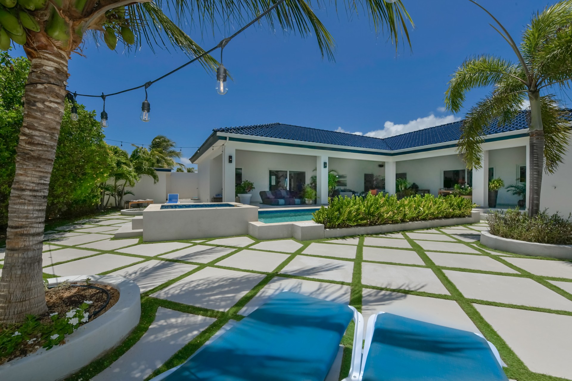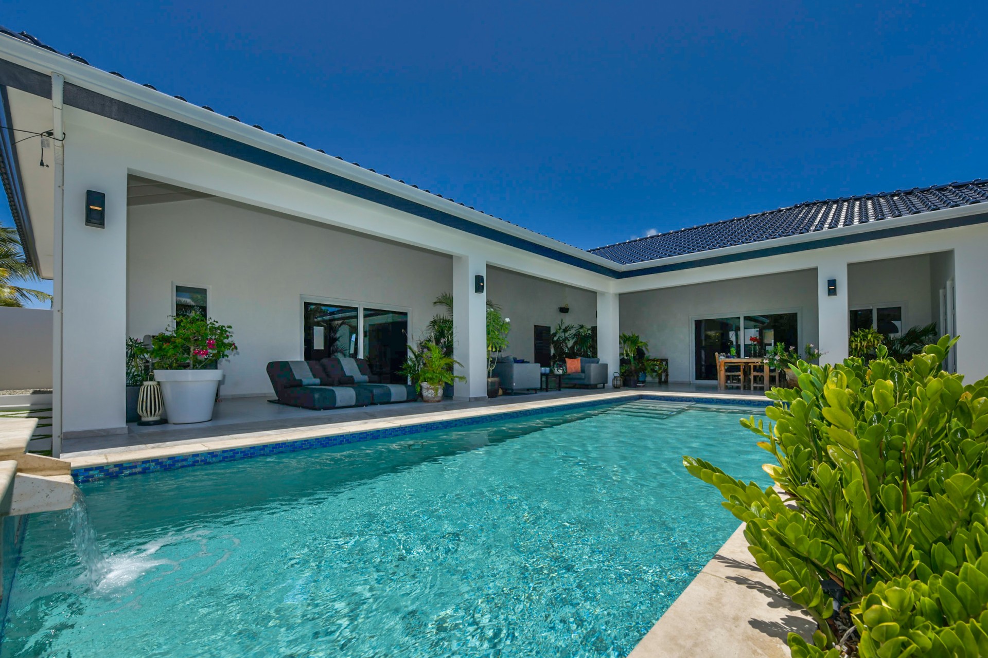 With 273m² of interior space, the villa is designed to make the most of Aruba’s sunny lifestyle. Step outside to your private saltwater pool, finished with premium Diamond Brite for smooth, lasting beauty. The layout allows constant wind circulation, keeping the area cool and comfortable throughout the day. A mature tropical garden surrounds the property, creating a peaceful, private atmosphere. Lush greenery and vibrant plants provide natural seclusion, making the outdoor space feel like a personal retreat.