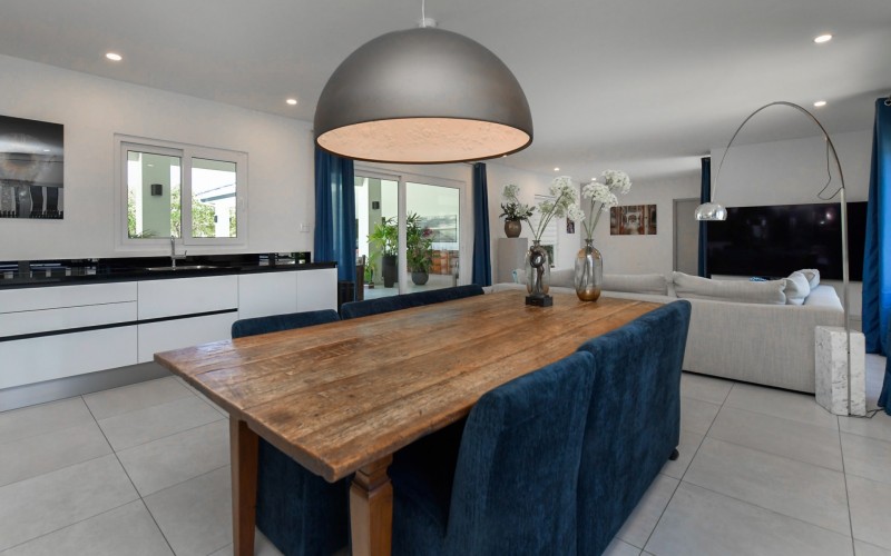 Completed only six years ago, the home was built with excellent craftsmanship and high-grade materials. Insulated ceilings maintain a pleasant indoor climate, even on warm days, and the villa’s orientation ensures that Aruba’s refreshing trade winds flow naturally through the outdoor areas.