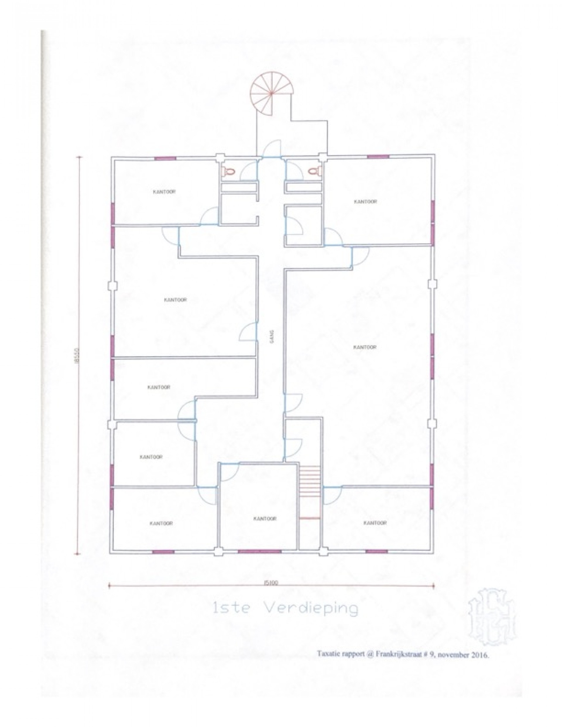 Spanning approximately 300 m², the layout is designed for functionality and flexibility, making it well-suited for professional services, consultancy firms, or administrative operations.