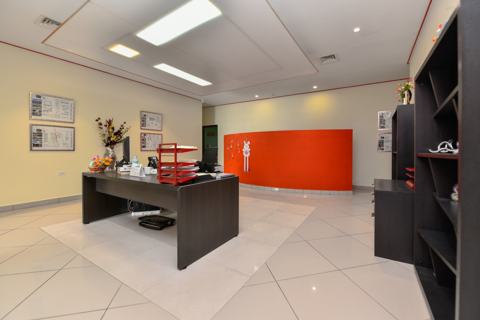 Most floors in the office building are finished with luxurious polished ceramic tiles, offering both durability and aesthetic appeal.