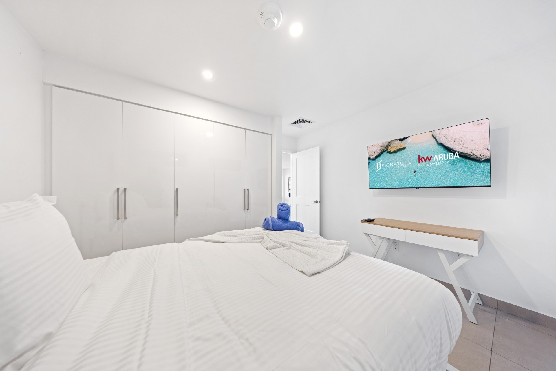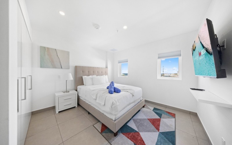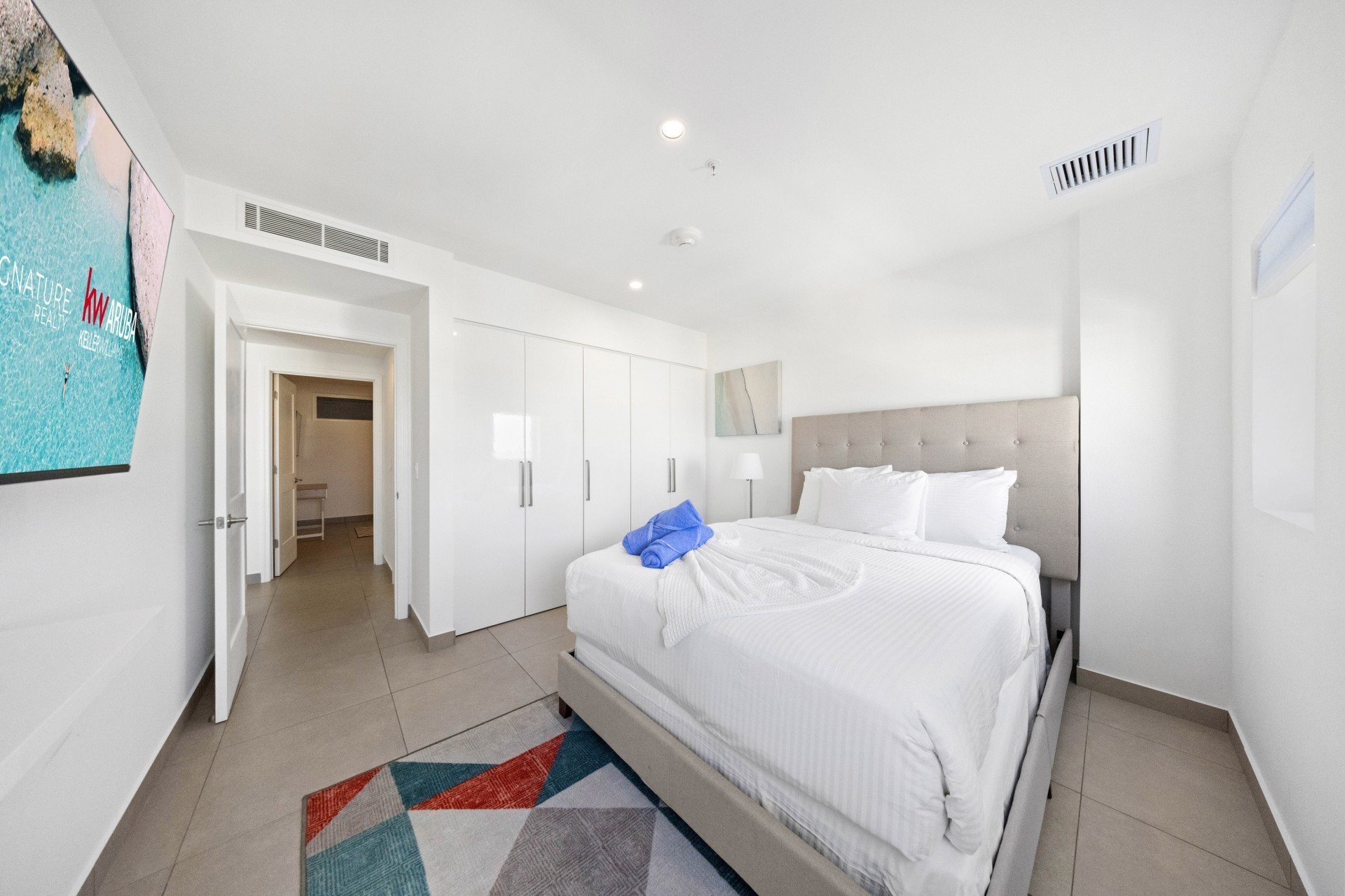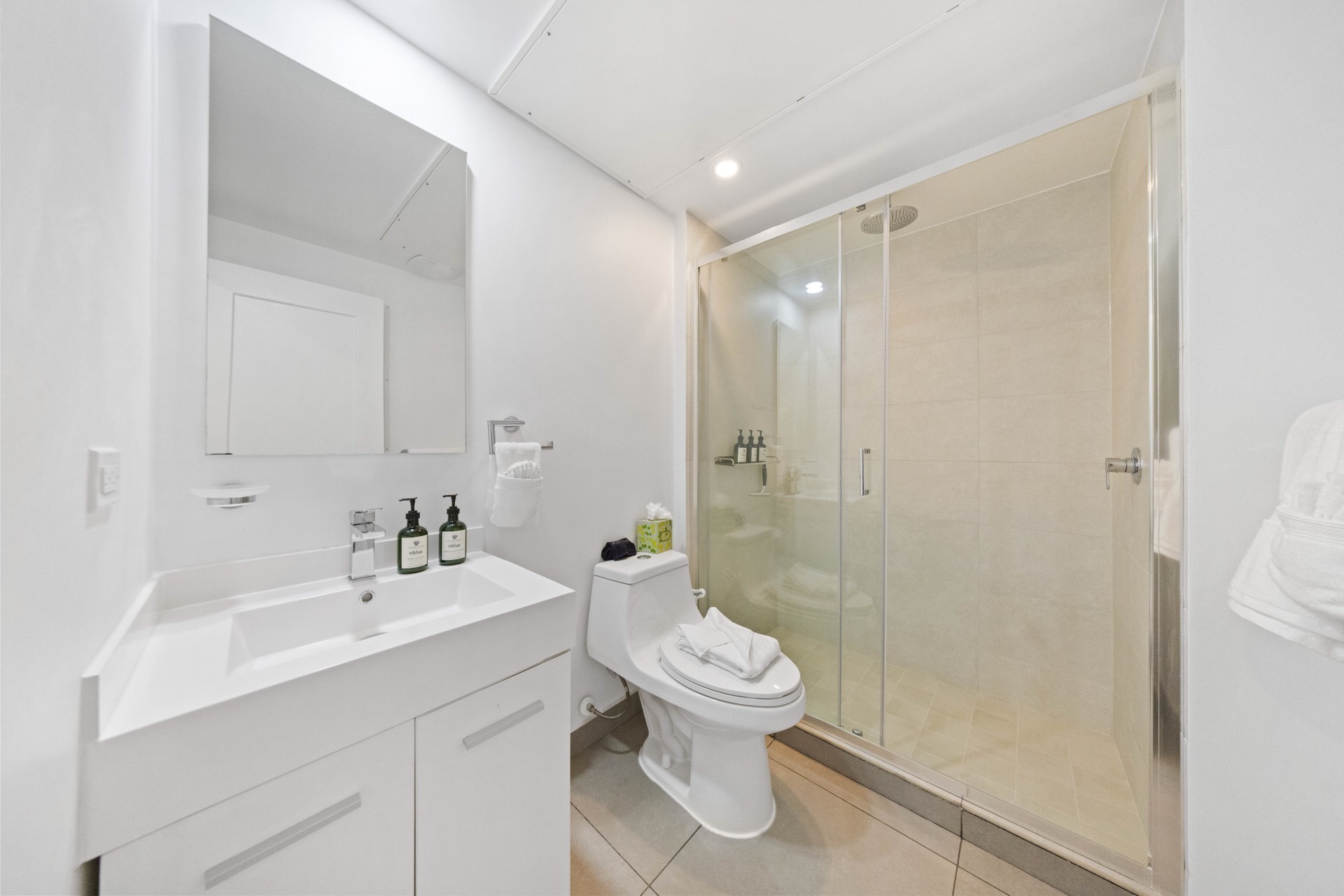 The bedrooms are thoughtfully designed with plenty of built-in storage, making them both stylish and practical. A large, modern bathroom with contemporary finishes ties it all together, giving the condo a fresh and inviting feel.