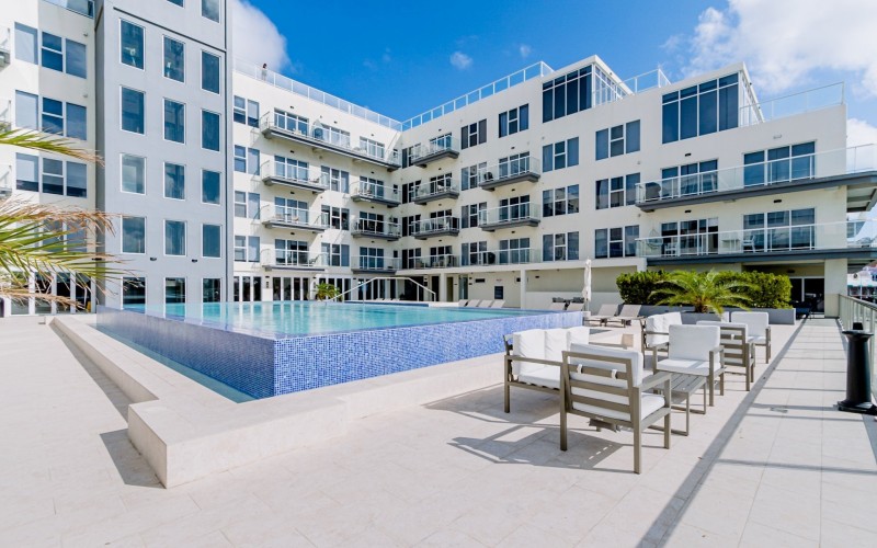 The building combines the energy of downtown with the feel of a private resort. Enjoy the infinity pool with sweeping ocean views, unwind on the rooftop terrace with jacuzzis and sundecks, or stay fit in the modern gym. Meet friends for a drink at the stylish bar, welcome guests in the elegant reception area, and take comfort in the convenience of secure parking and 24/7 security.