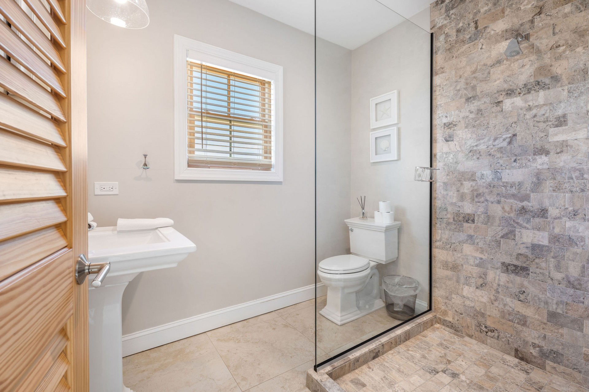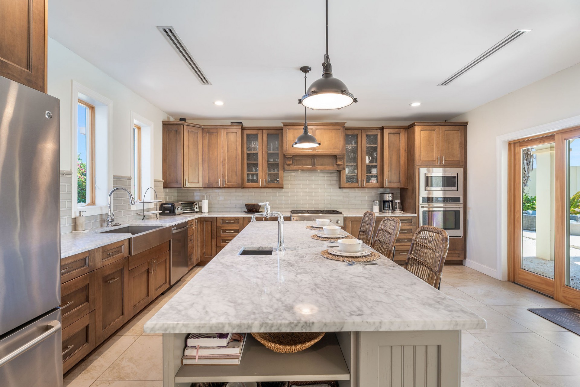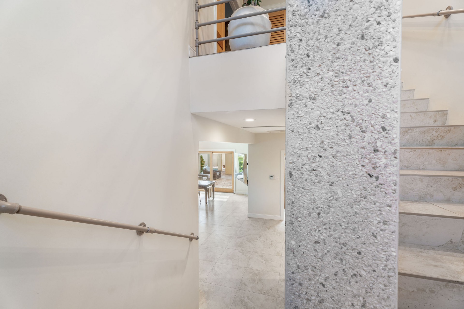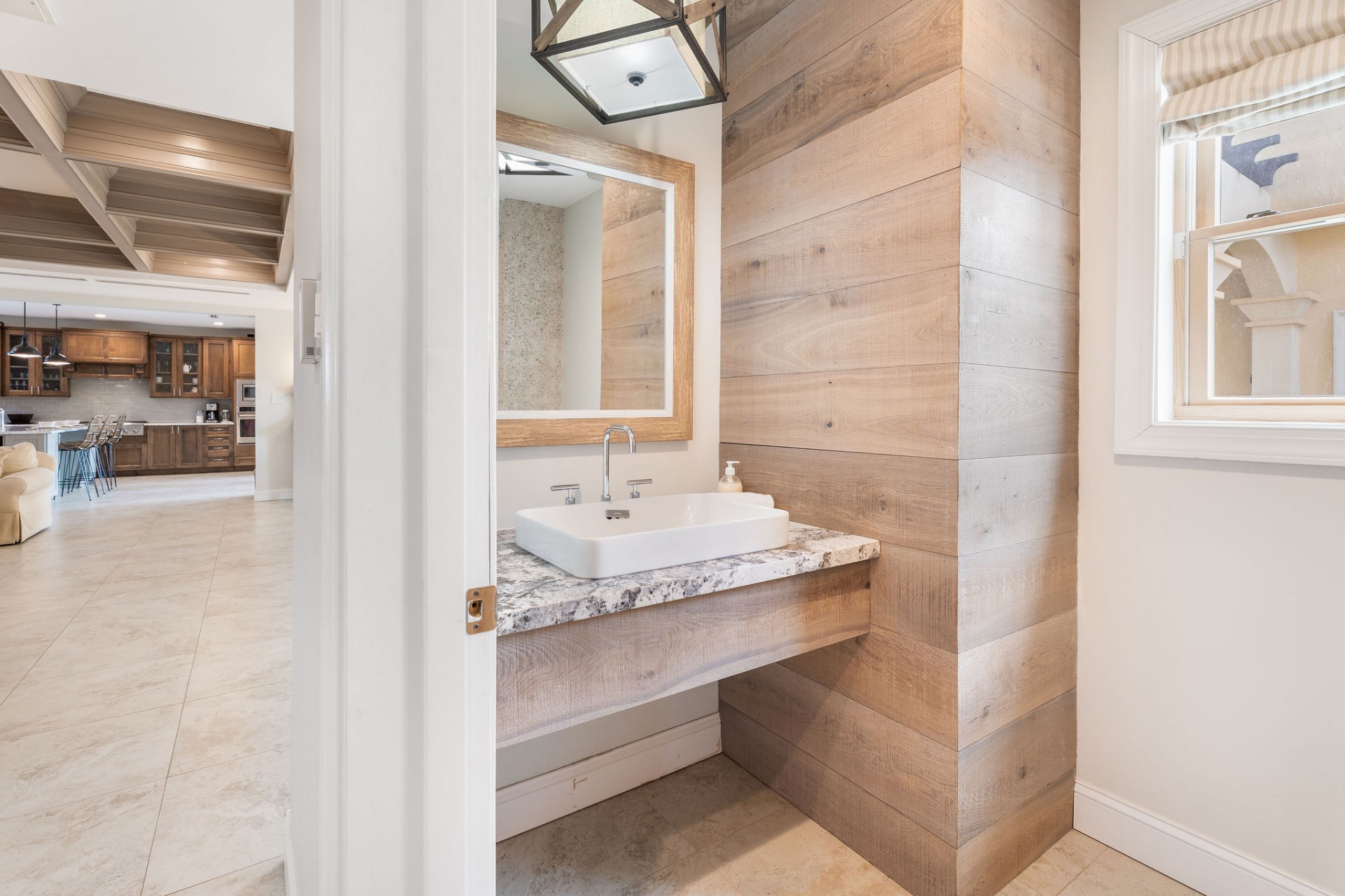 Seamless indoor–outdoor living with private beach-style lounging area