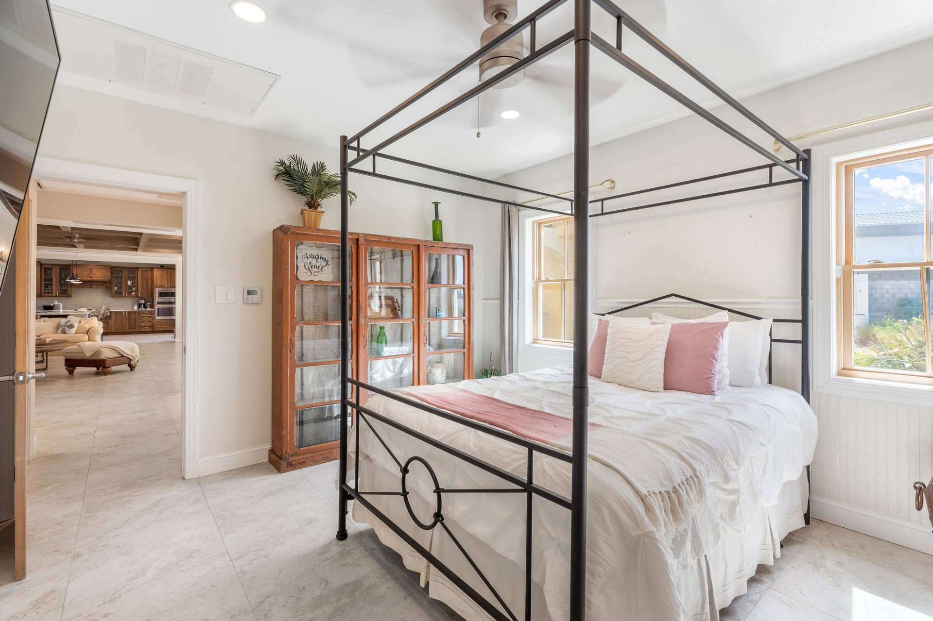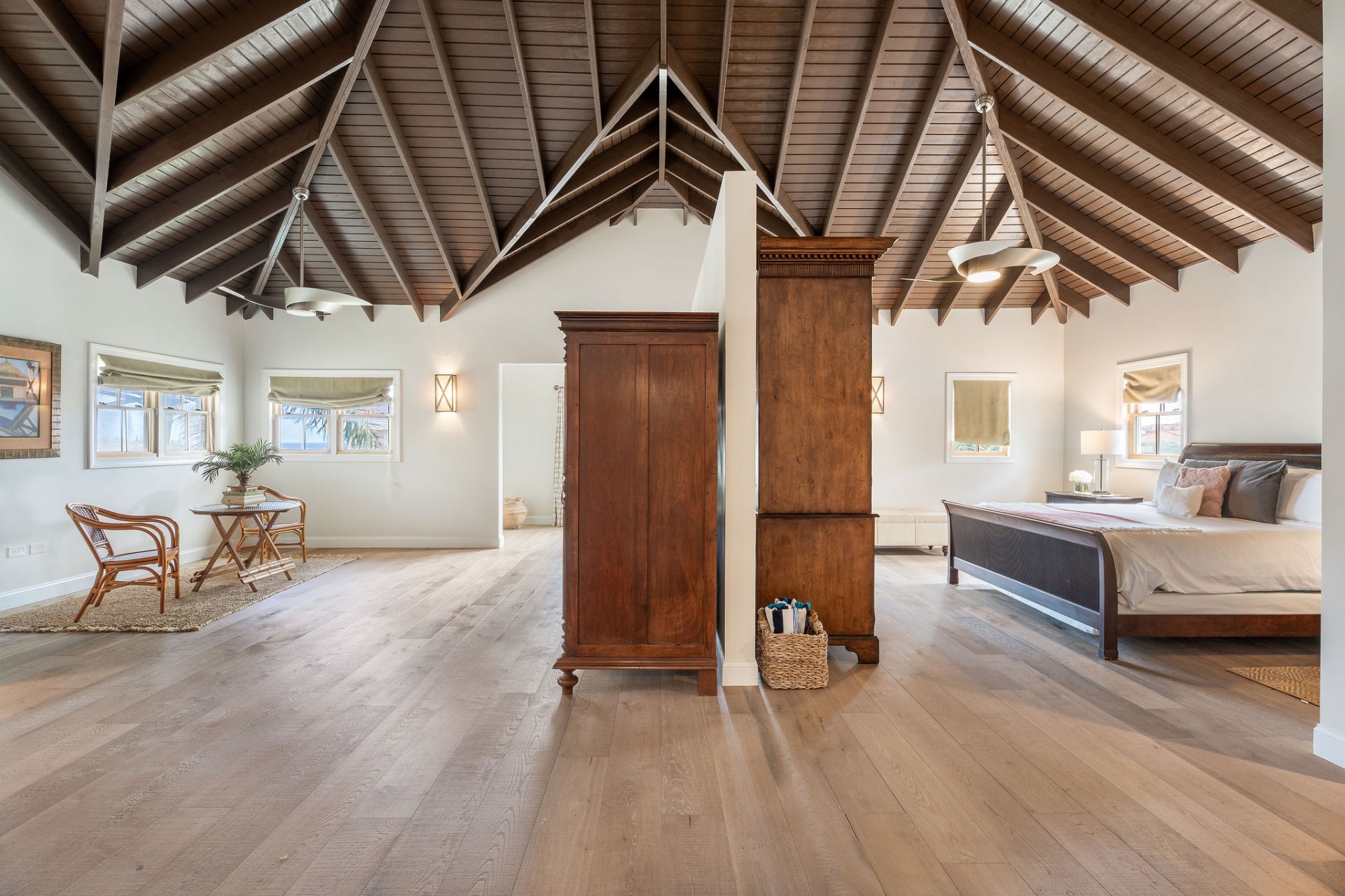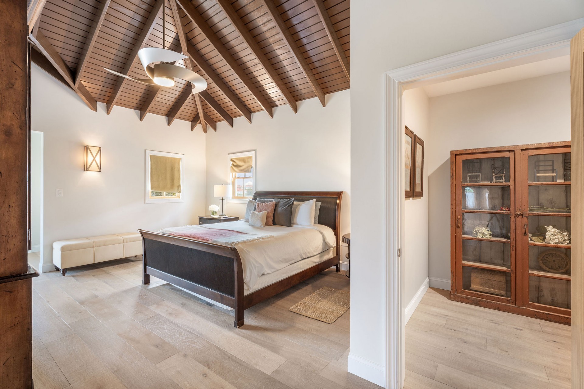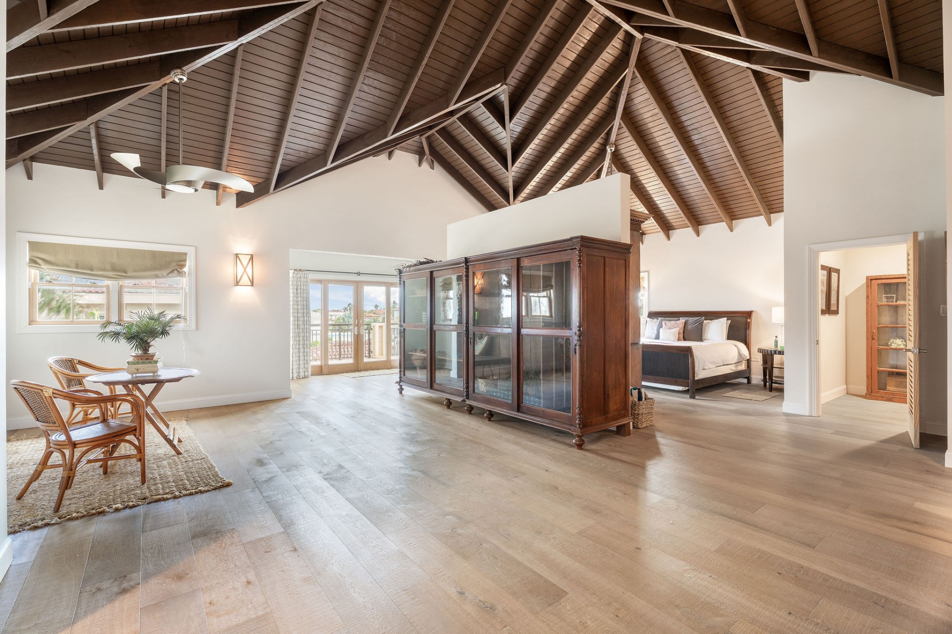 The main residence features 5 spacious bedrooms and 5.5 bathrooms, with an empressive master bedroom and all bedrooms offering en-suite bathrooms including stunning ocean views. The open-concept living, dining, and kitchen area is nothing short of spectacular, highlighted by a beautifully designed ceiling and expansive volumes that flow seamlessly together, creating a grand yet warm living environment.