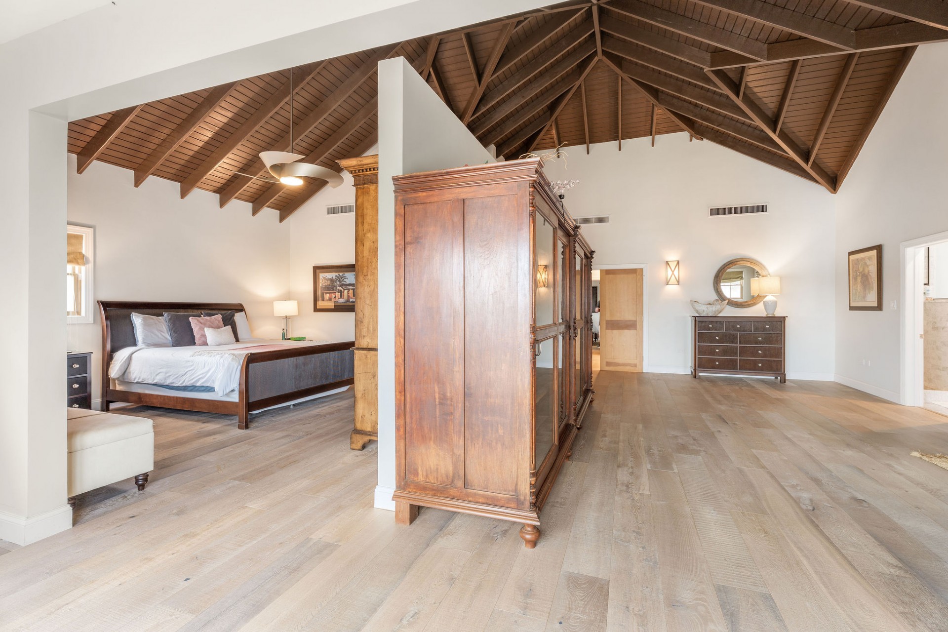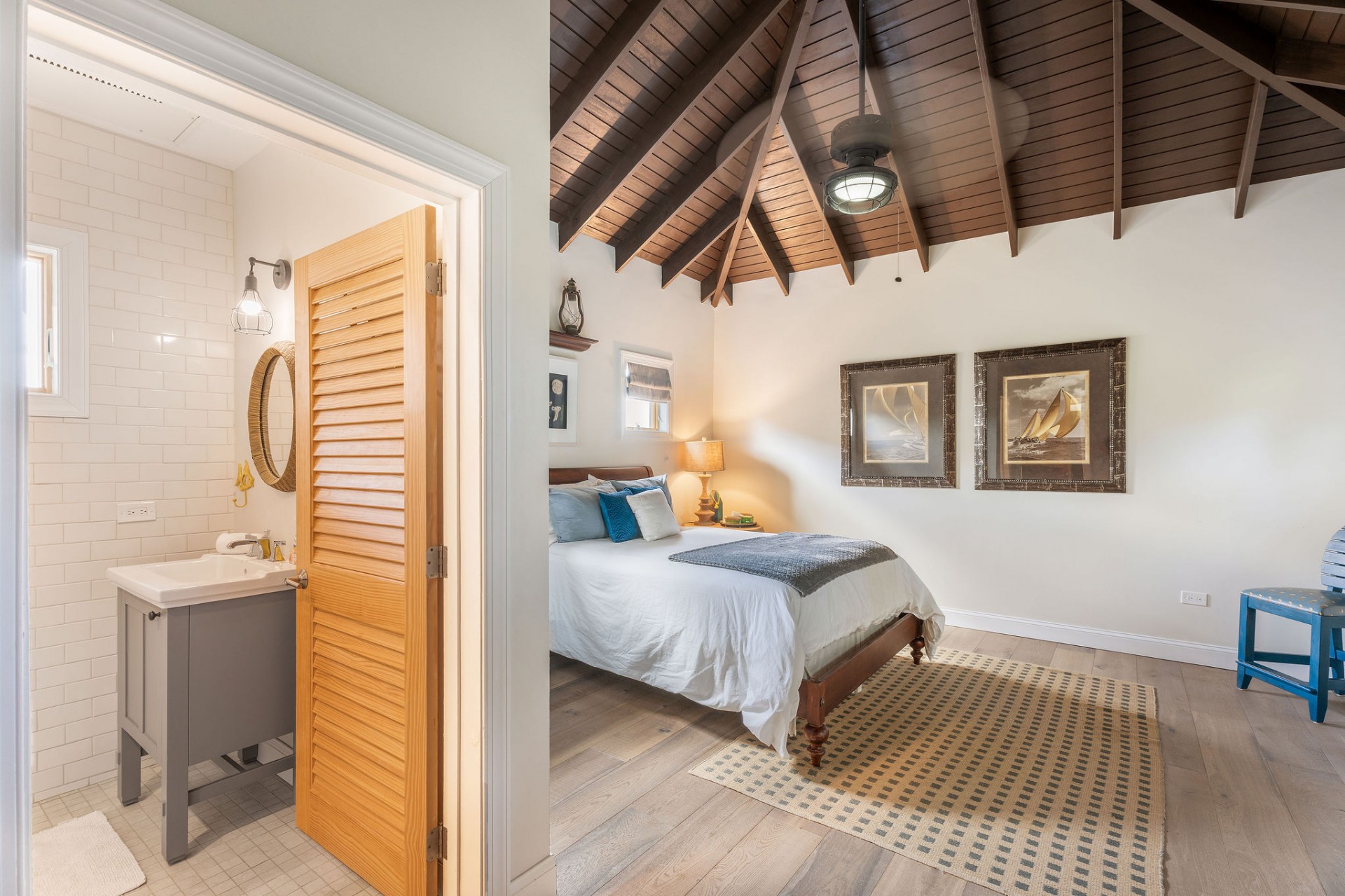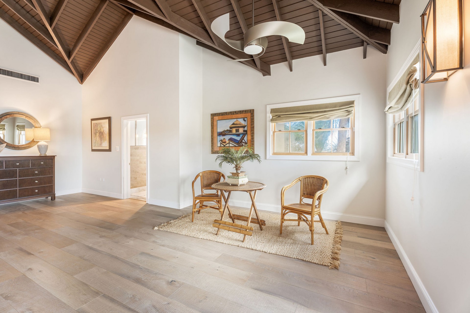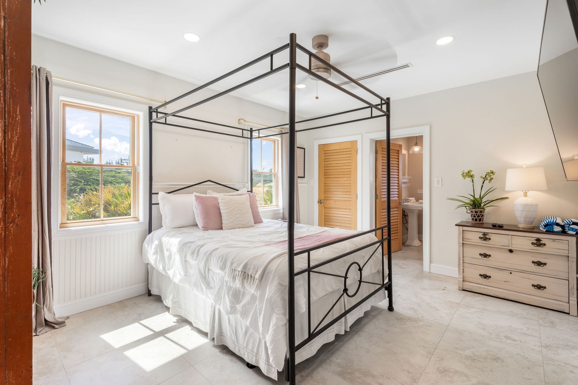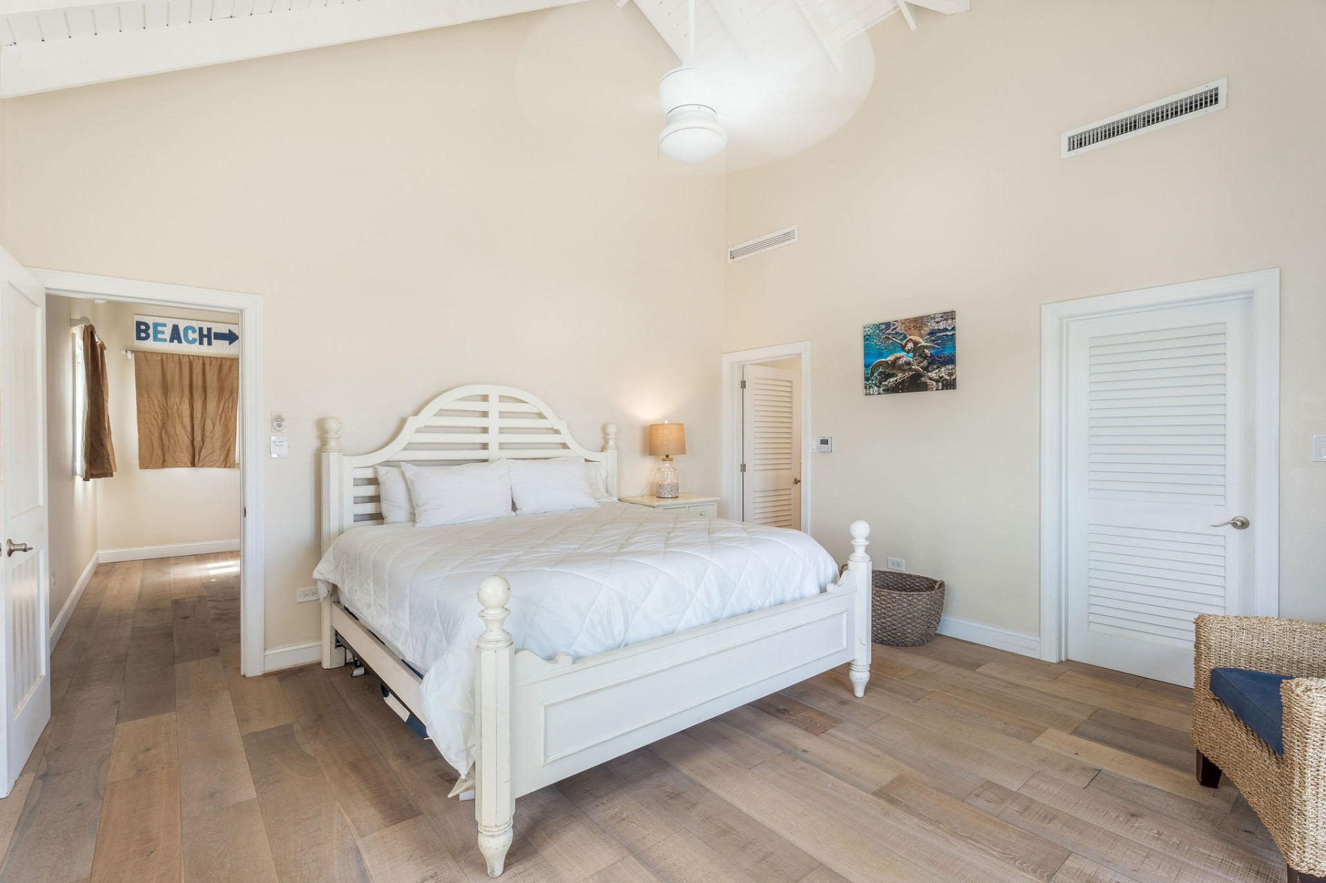 The main residence features 5 spacious bedrooms and 5.5 bathrooms, with an empressive master bedroom and all bedrooms offering en-suite bathrooms including stunning ocean views. The open-concept living, dining, and kitchen area is nothing short of spectacular, highlighted by a beautifully designed ceiling and expansive volumes that flow seamlessly together, creating a grand yet warm living environment.