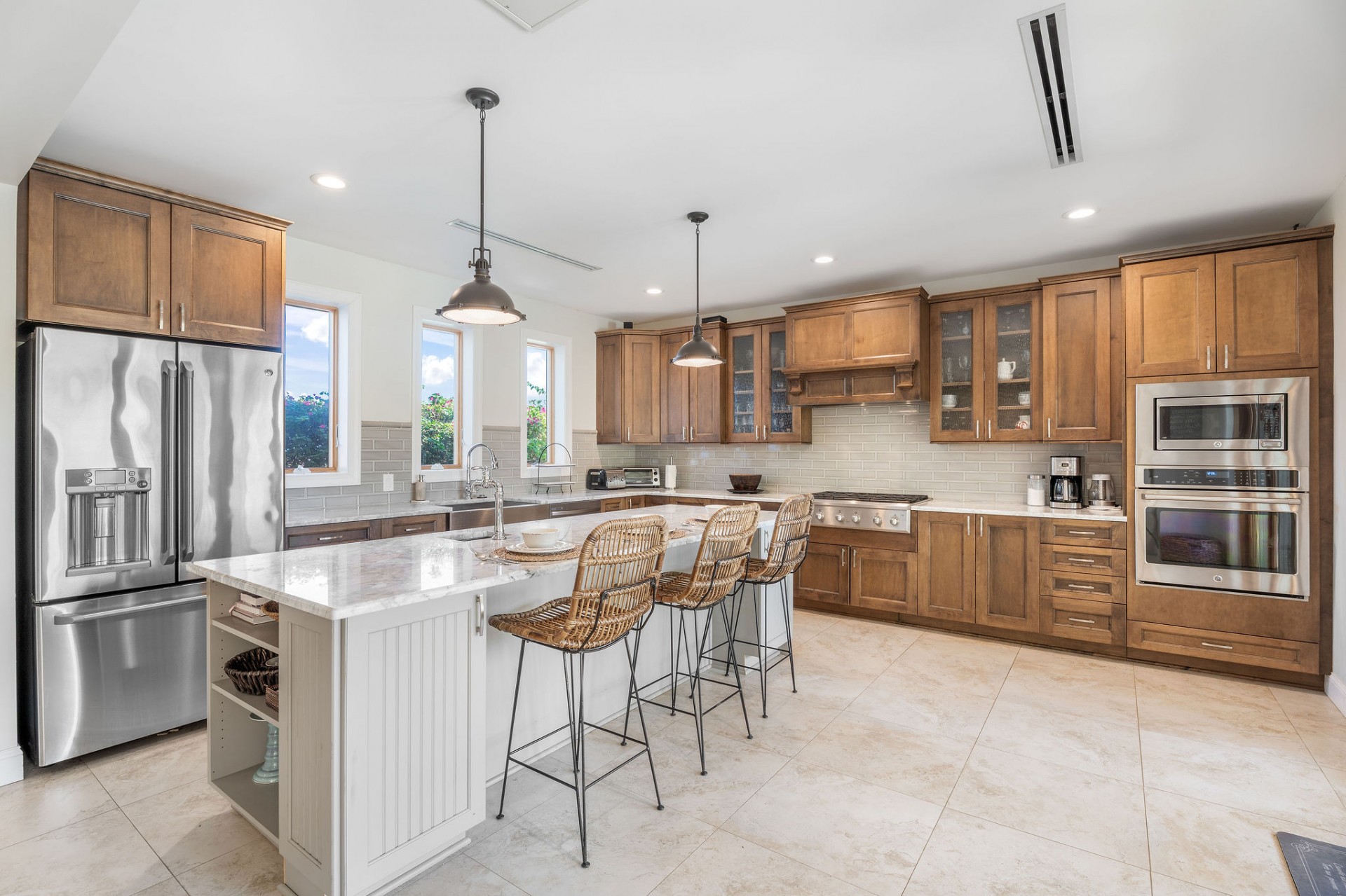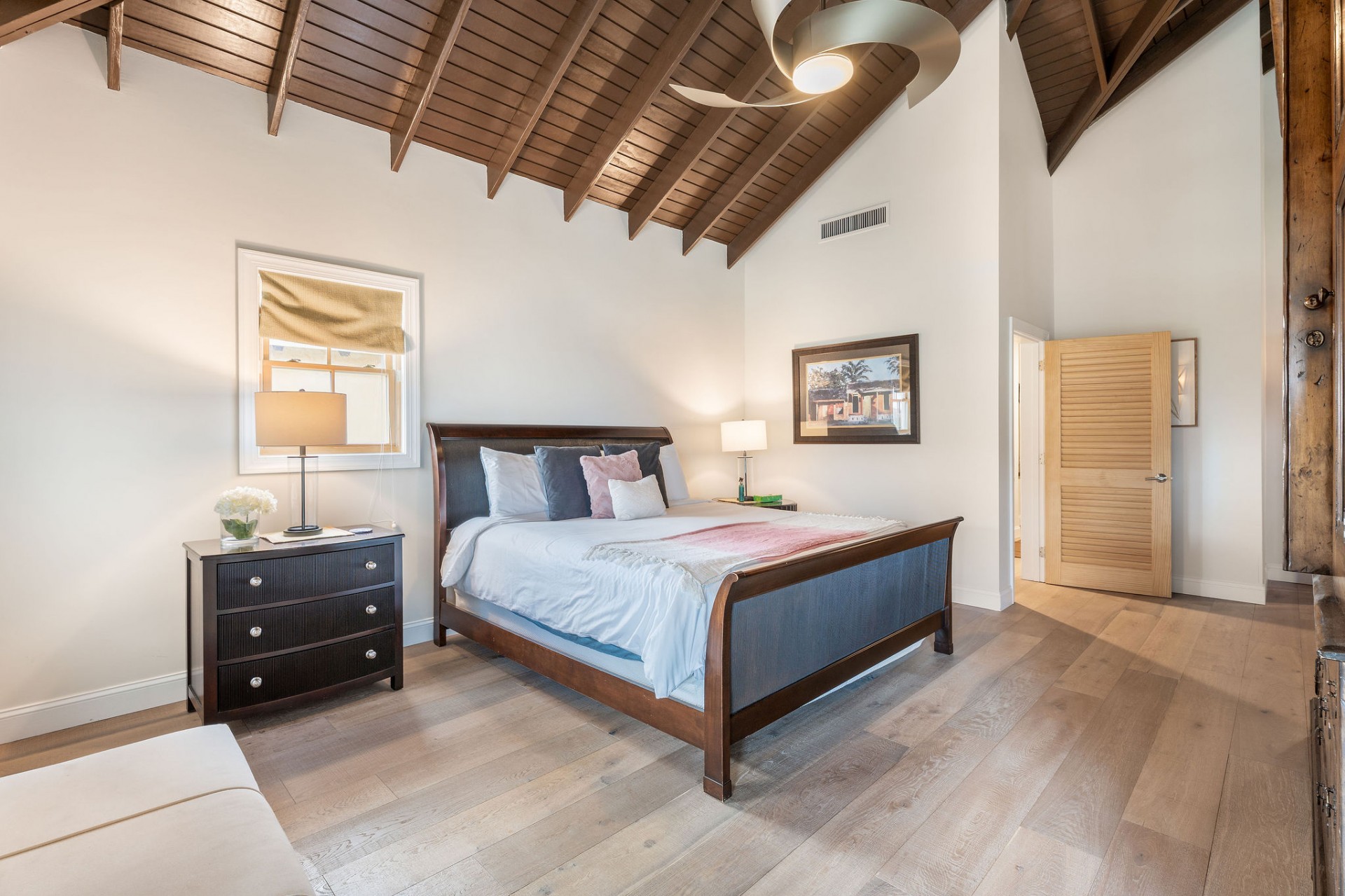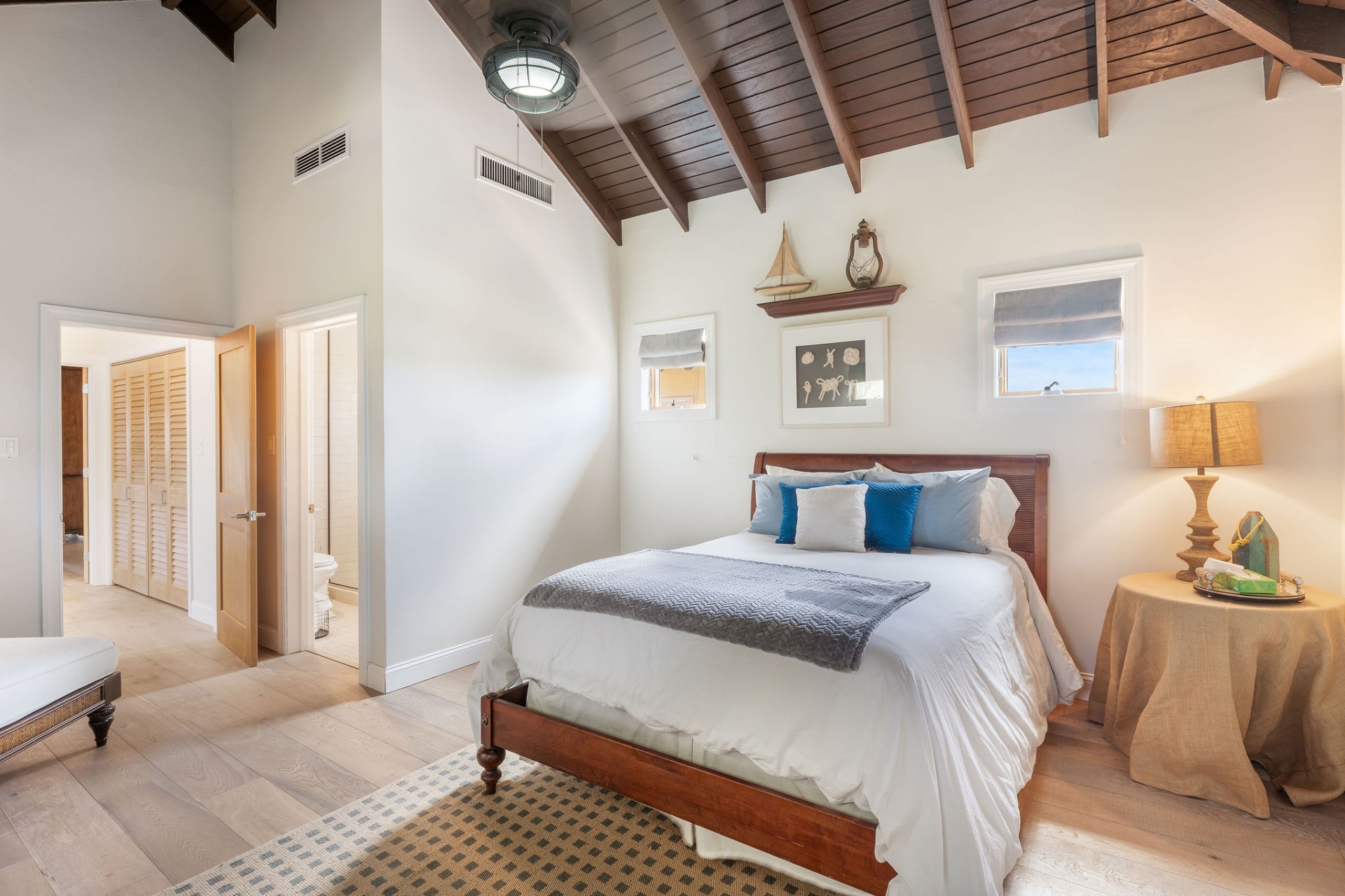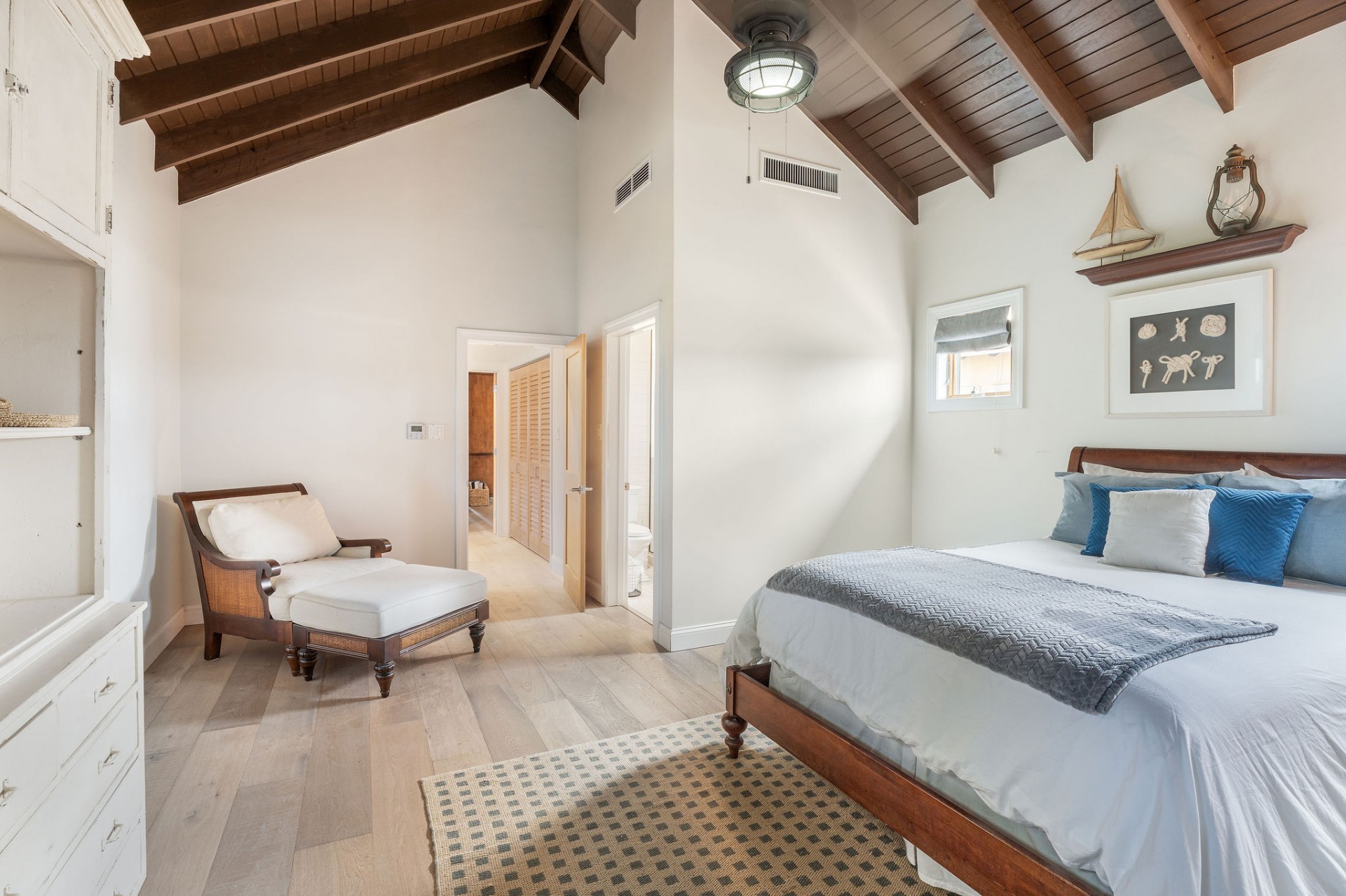 The main residence features 5 spacious bedrooms and 5.5 bathrooms, with an empressive master bedroom and all bedrooms offering en-suite bathrooms including stunning ocean views. The open-concept living, dining, and kitchen area is nothing short of spectacular, highlighted by a beautifully designed ceiling and expansive volumes that flow seamlessly together, creating a grand yet warm living environment.