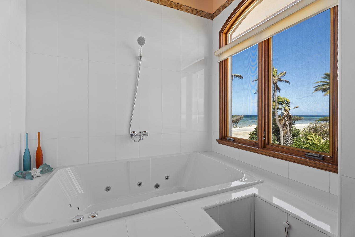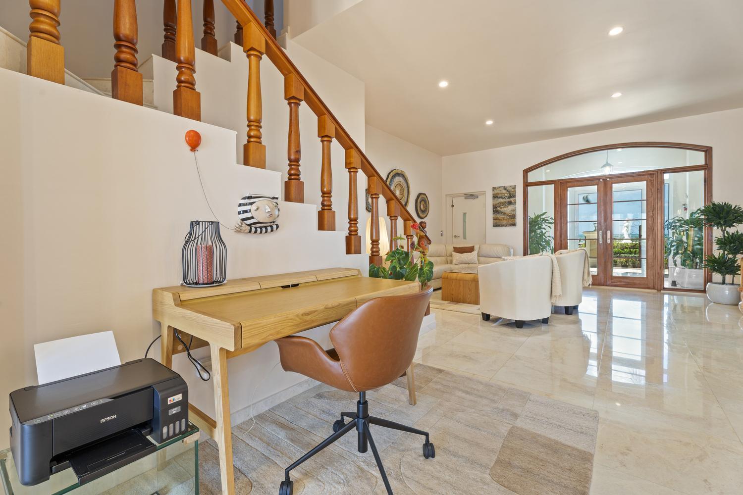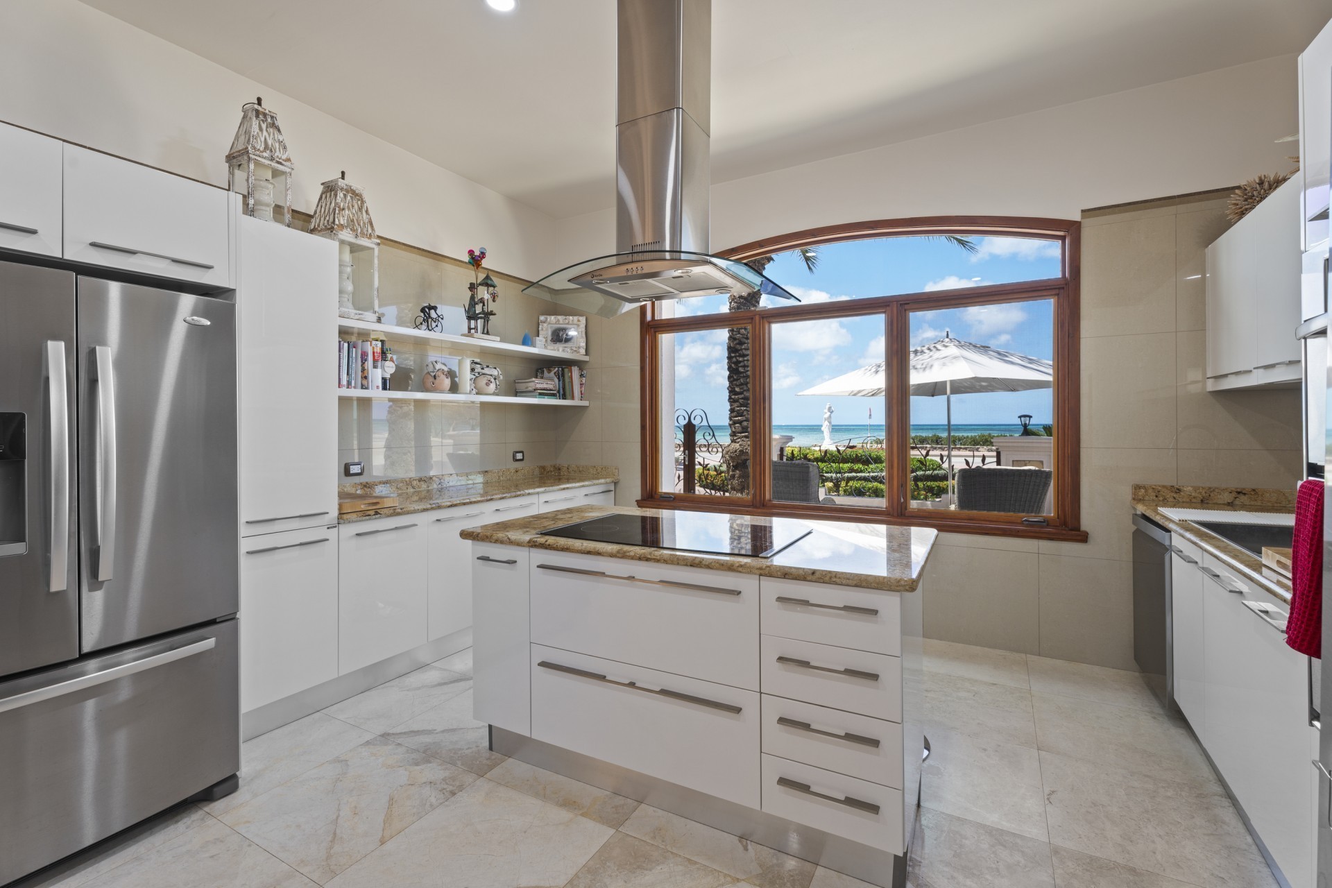 Fully renovated, fully furnished, and move-in ready, this estate combines timeless design with modern sophistication. From the elegant circular driveway, double front doors open into a spacious living area where the open design seamlessly connects to the backyard, creating an immediate sense of light and flow. A semi-open layout flows seamlessly into the fully equipped chef’s kitchen with a grand island – offering panoramic sea views that make cooking a true experience.