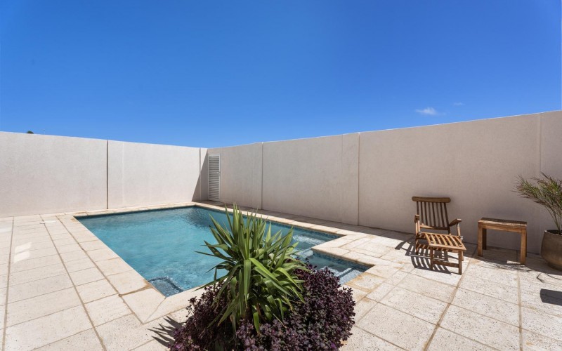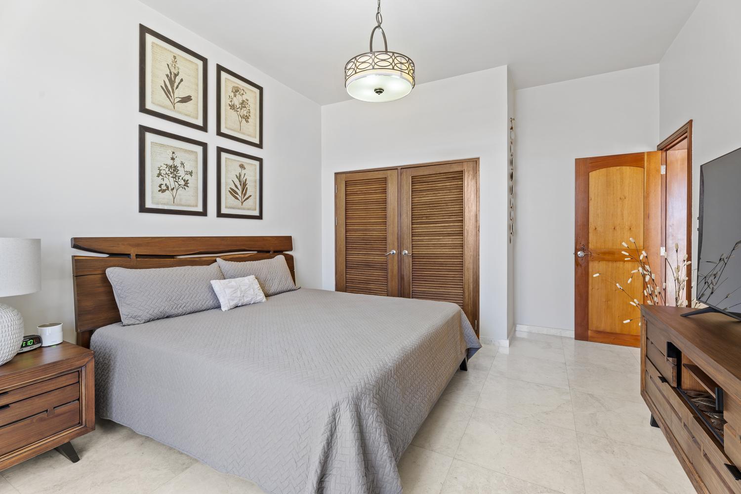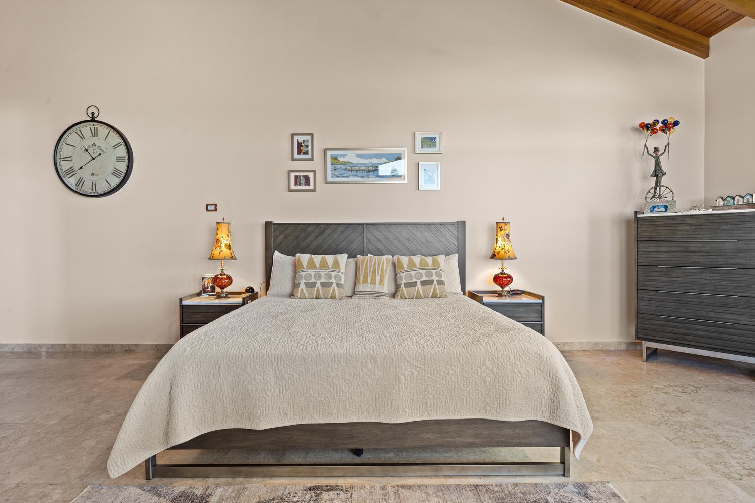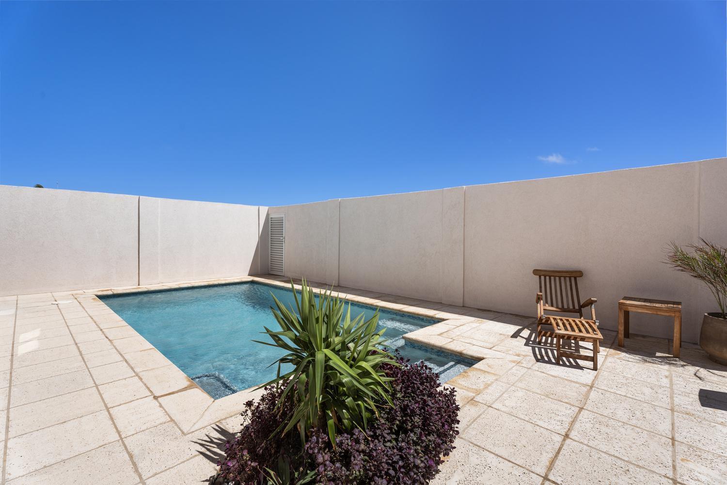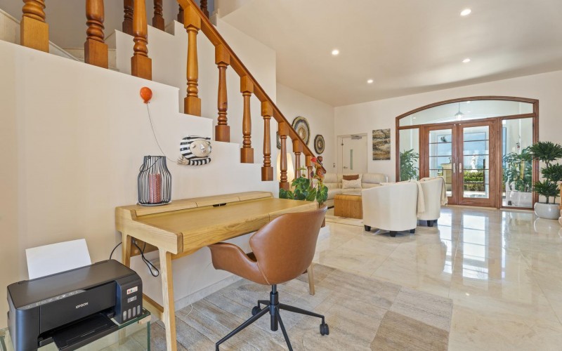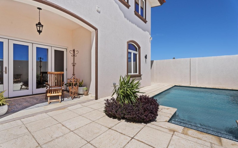 The villa offers 5 bedrooms and 4.5 bathrooms across two levels. On the ground floor, two bright and spacious bedrooms each feature their own ensuite bathroom, providing comfort and privacy. A stylish powder room and an attached two-car garage with direct access to a dedicated laundry room complete this level.