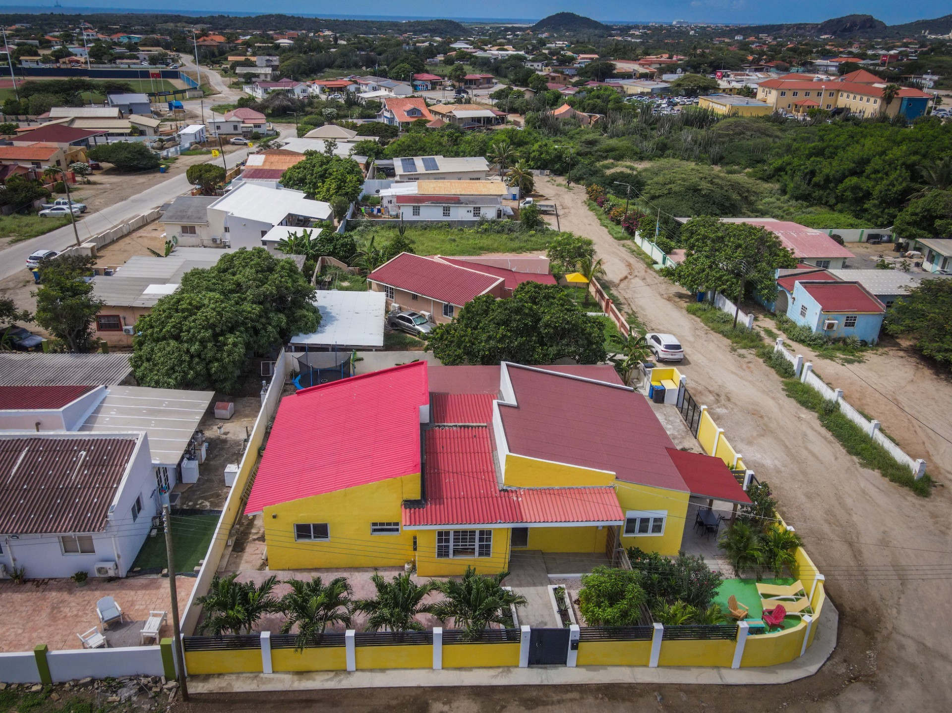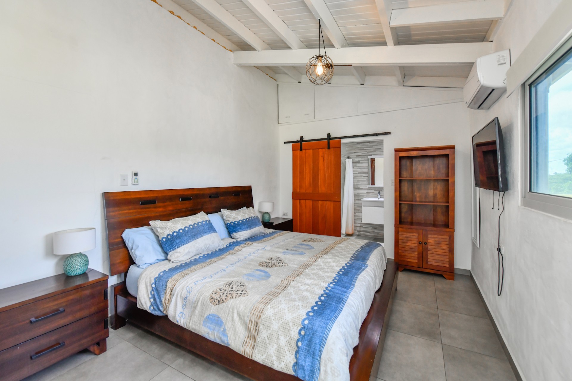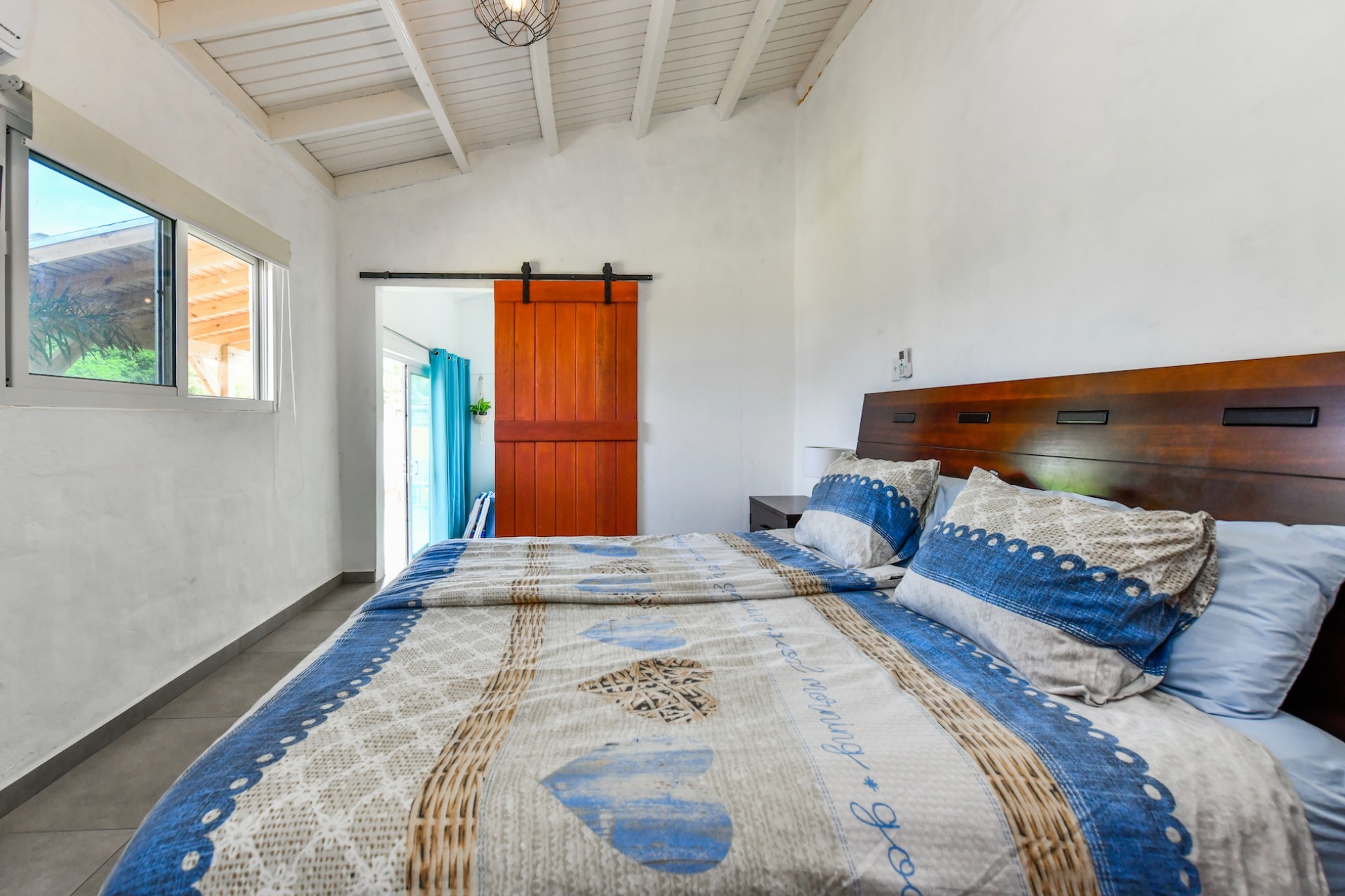 The property sits in a peaceful and elevated spot on a quiet sand road, enjoying refreshing breezes and a beautiful view.