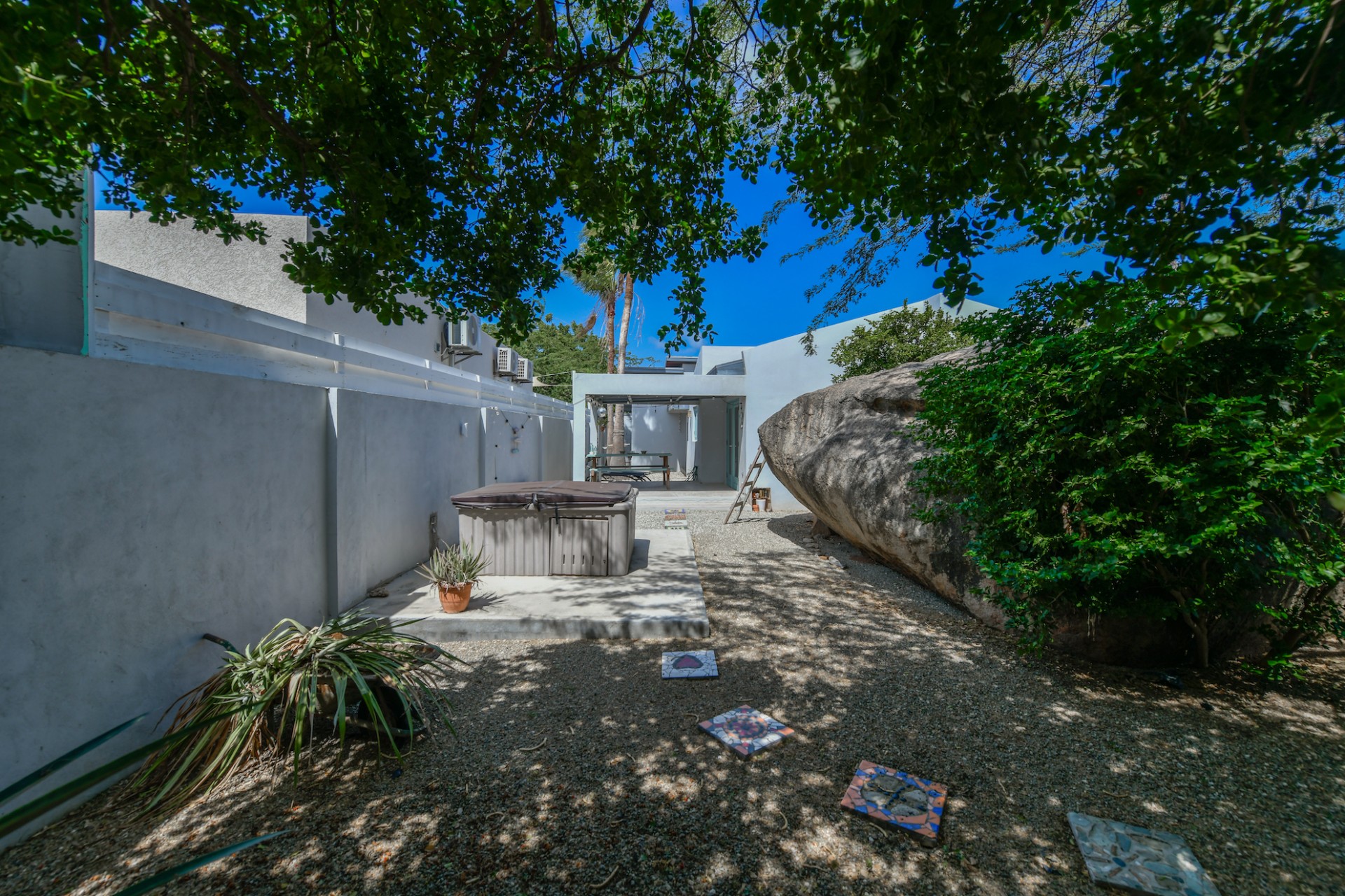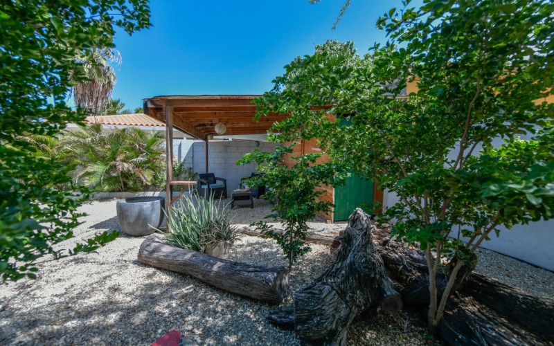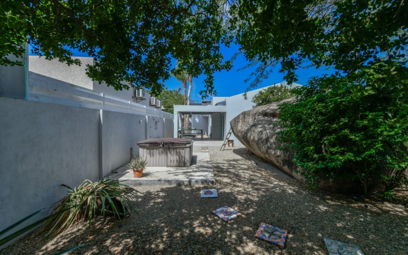 In the garden, you’ll find a lovely covered sitting area, perfect for relaxing or entertaining guests. There’s also a jacuzzi, and enough space to add a swimming pool if desired.