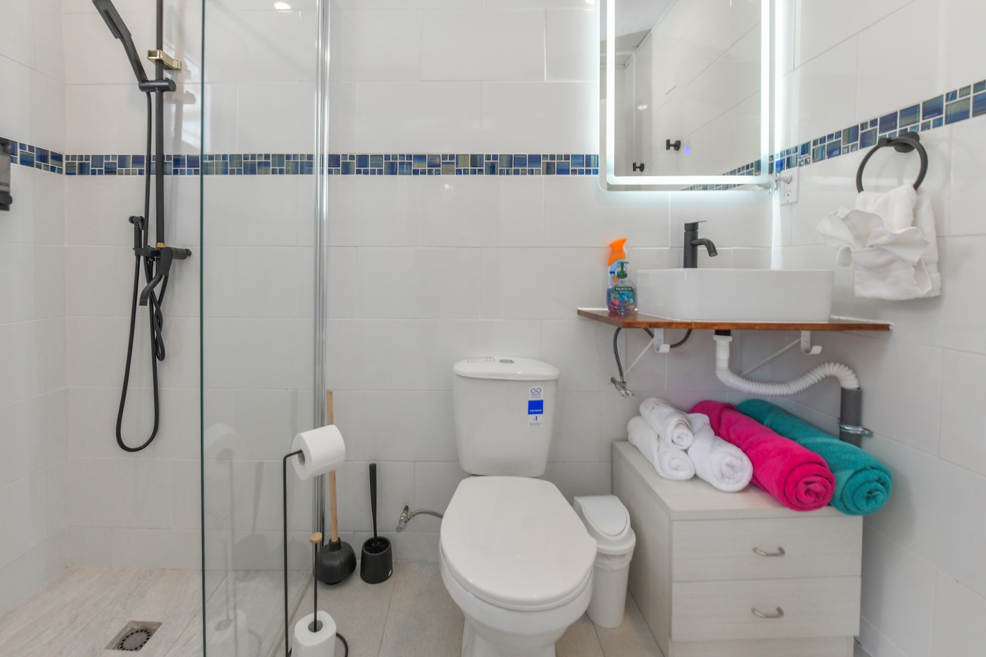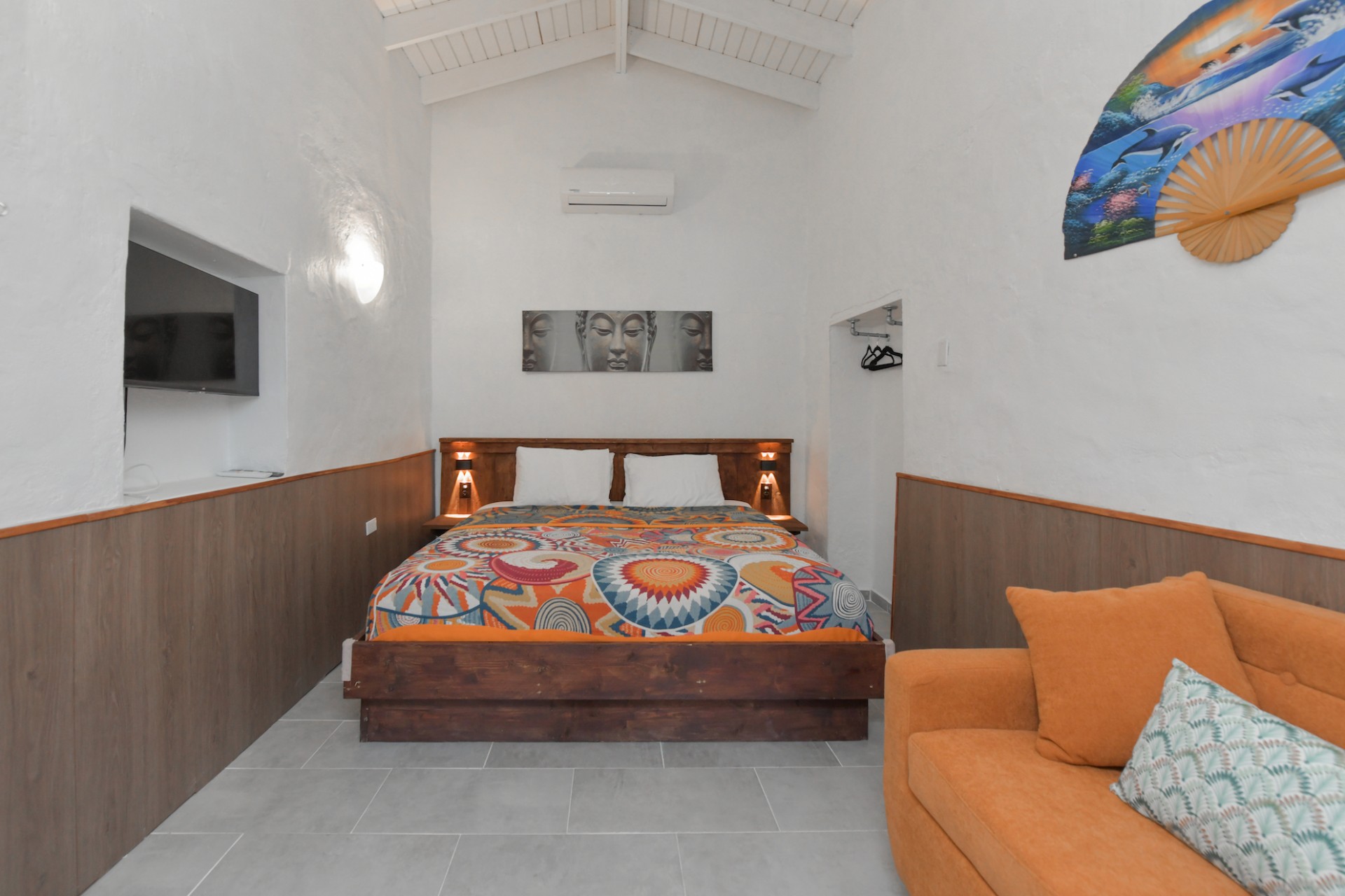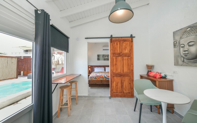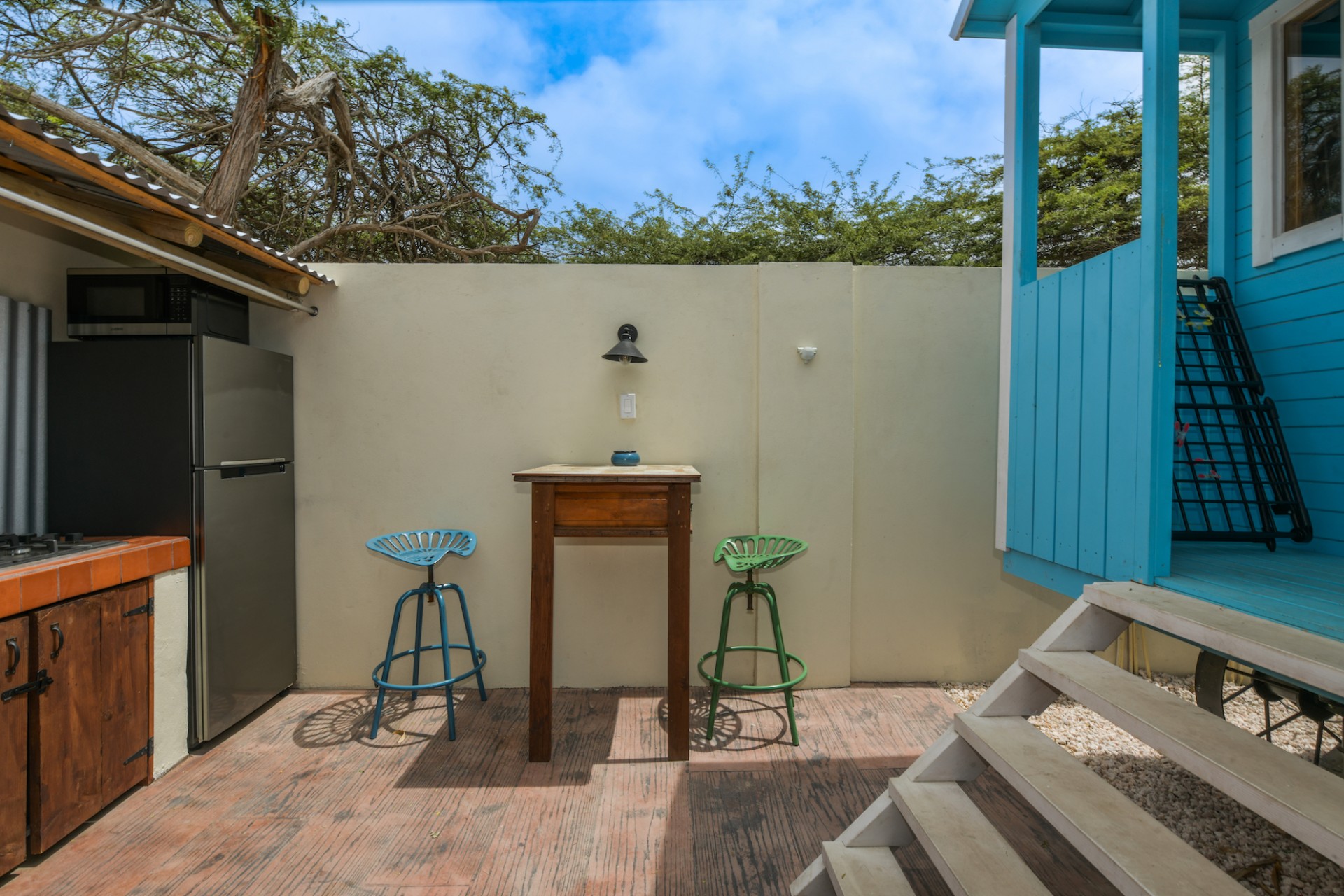 The original cunucu-style home, with an extension, has been thoughtfully divided into three 1-bedroom apartments, each with its own kitchen, bedroom, and bathroom.