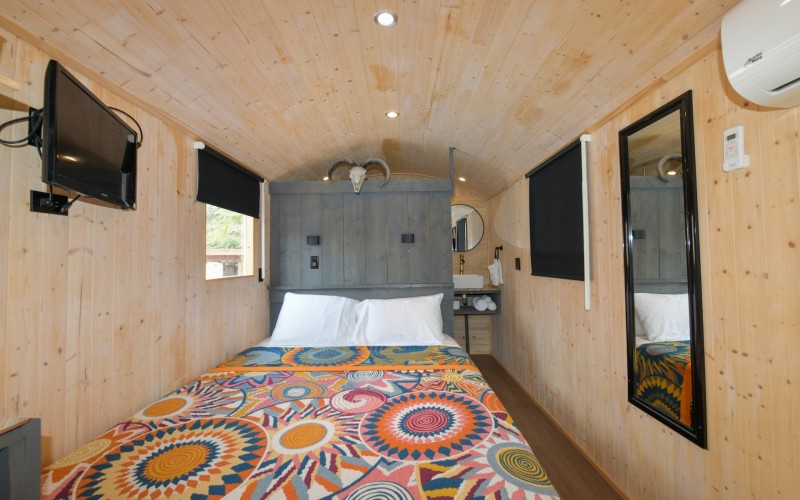 In addition, the property features two charming “pipo” wagons, set up as cozy studio units with a private bathroom and outdoor kitchen, ideal for guests or rentals.