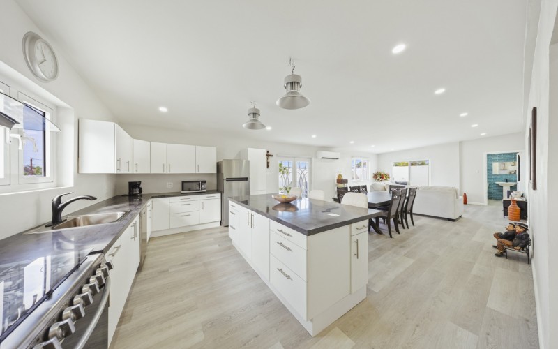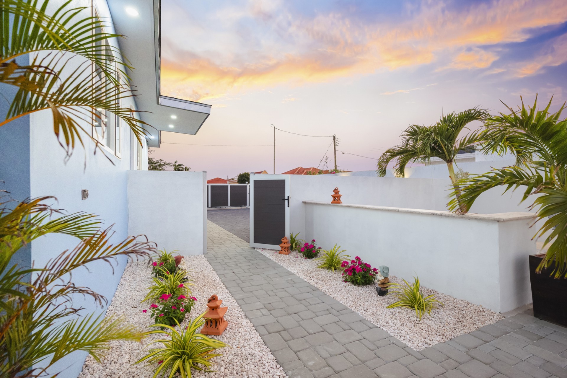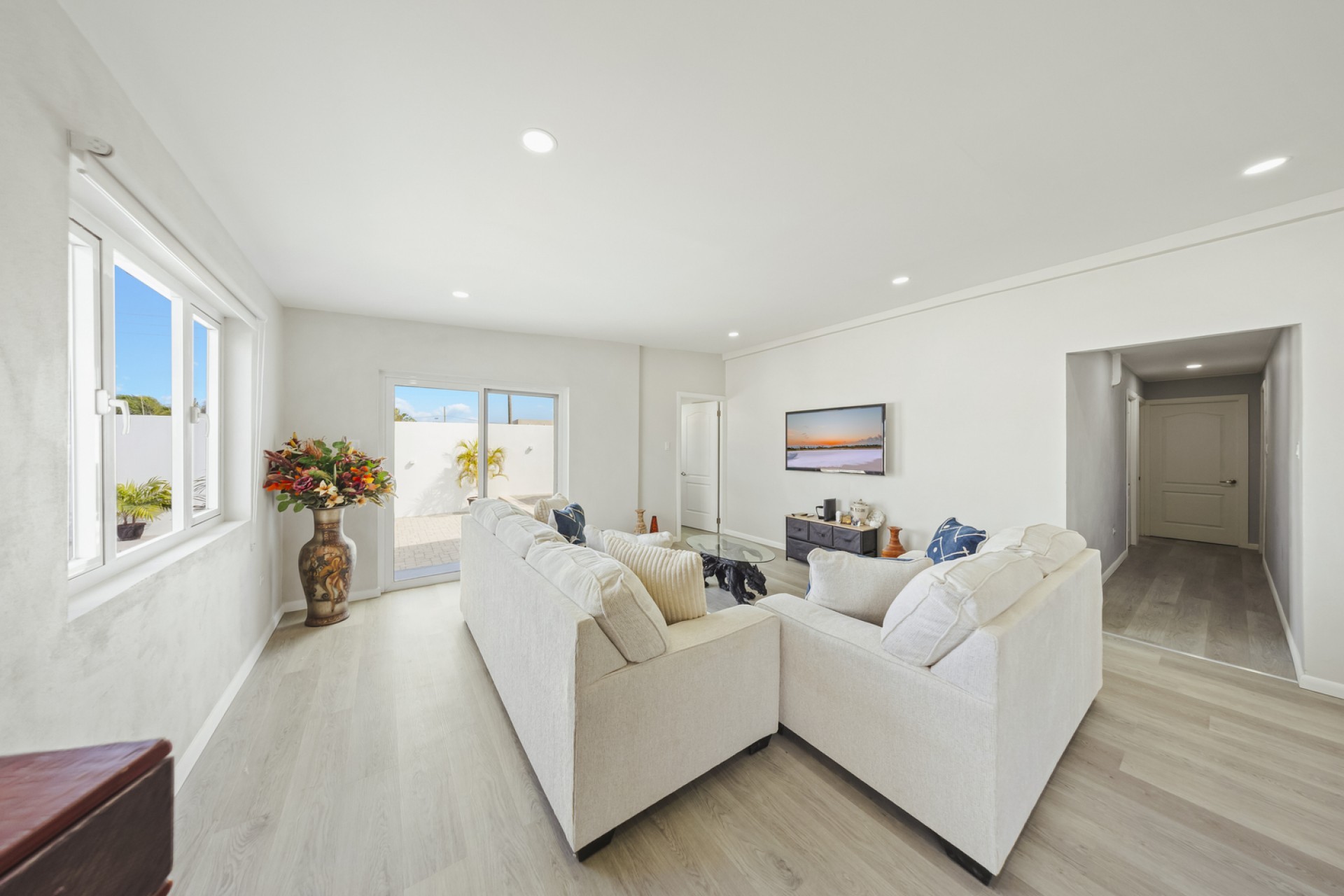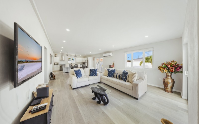 Turn-key island living meets modern comfort in this fully renovated 4-bedroom villa, ideally located in a quiet cul-de-sac in Noord, just 1 mile from Eagle Beach. Set on 607 m² of full-ownership land, this fully gated property offers privacy, style, and exceptional rental potential.