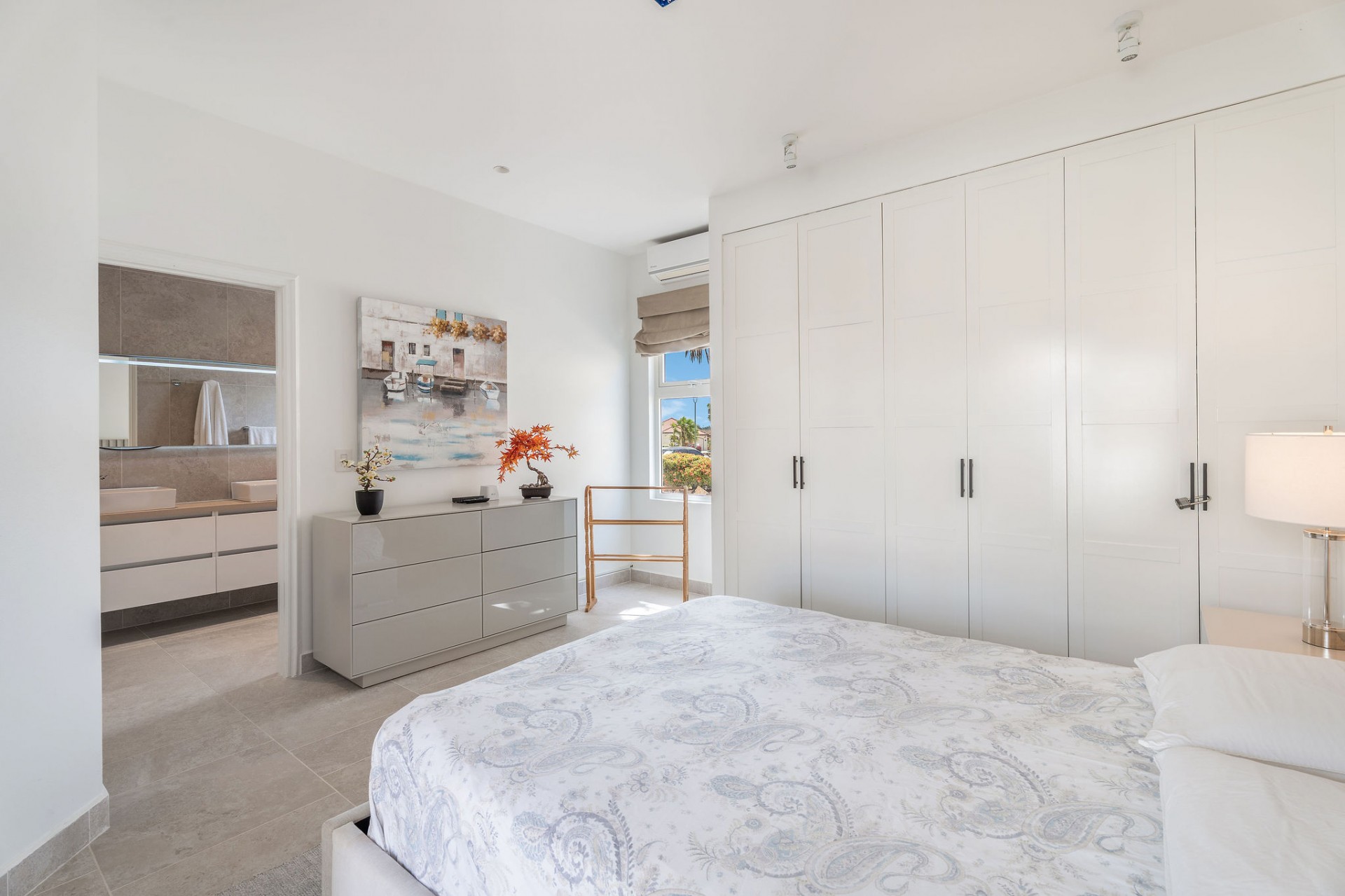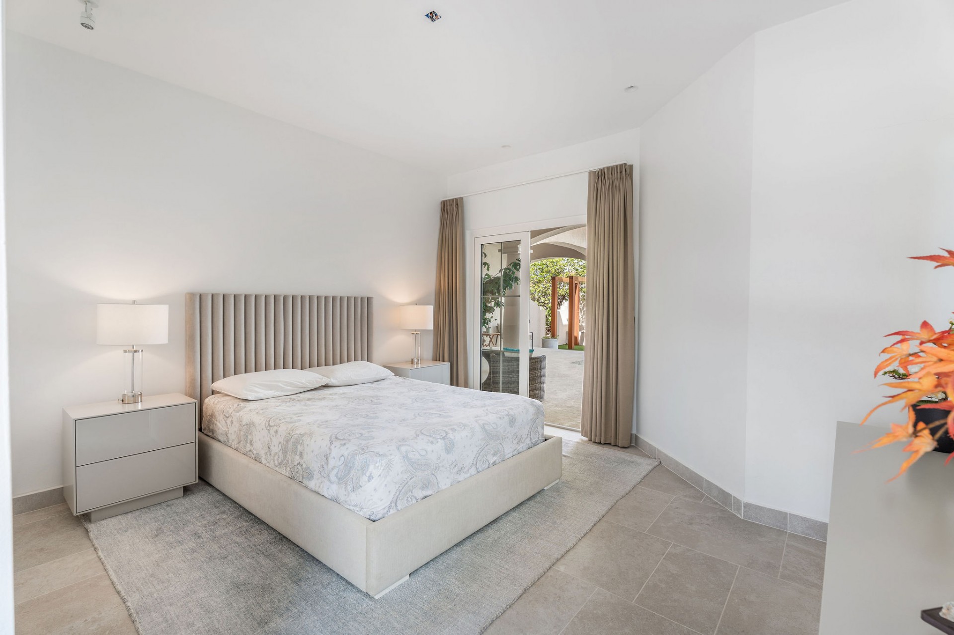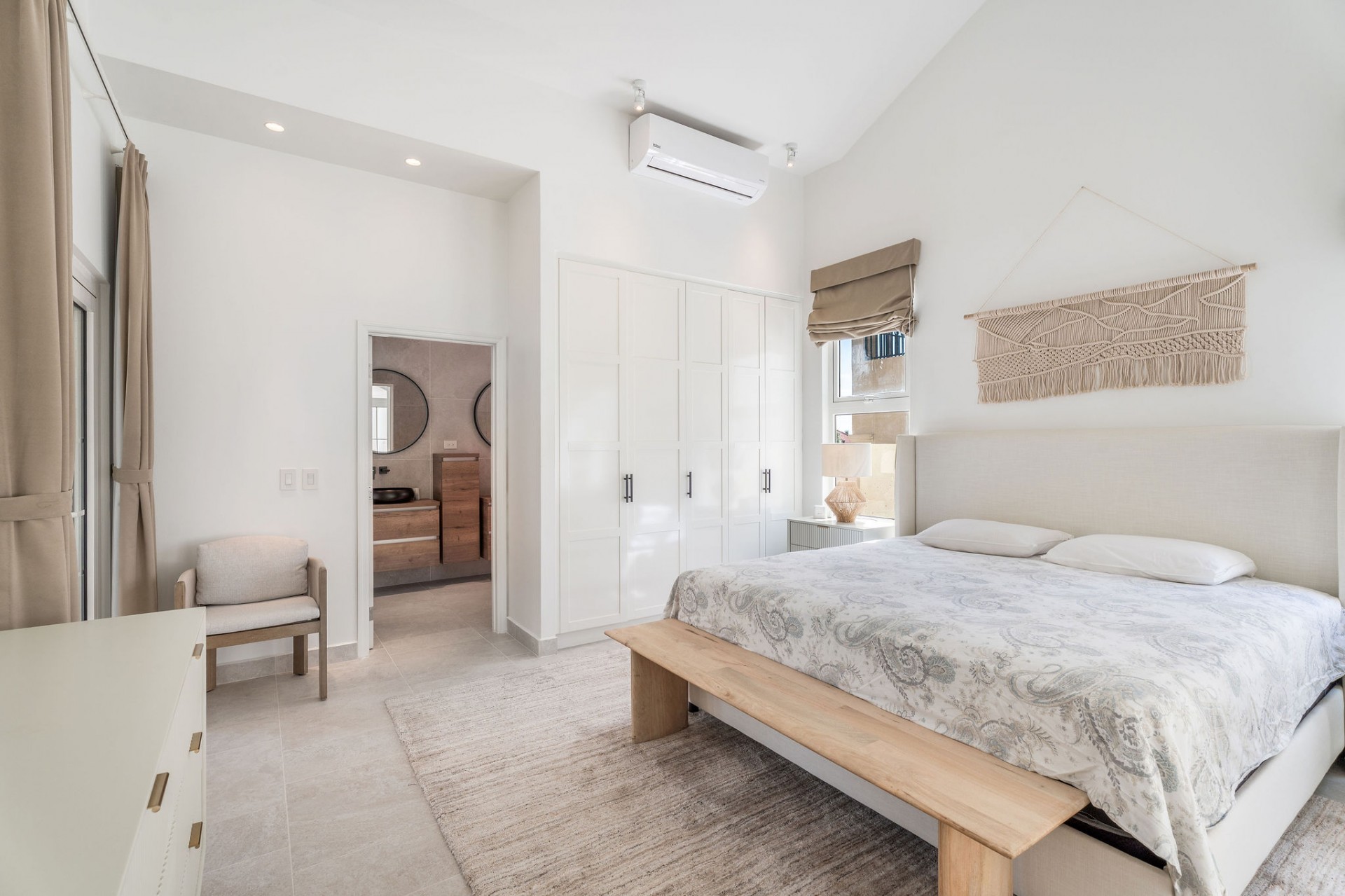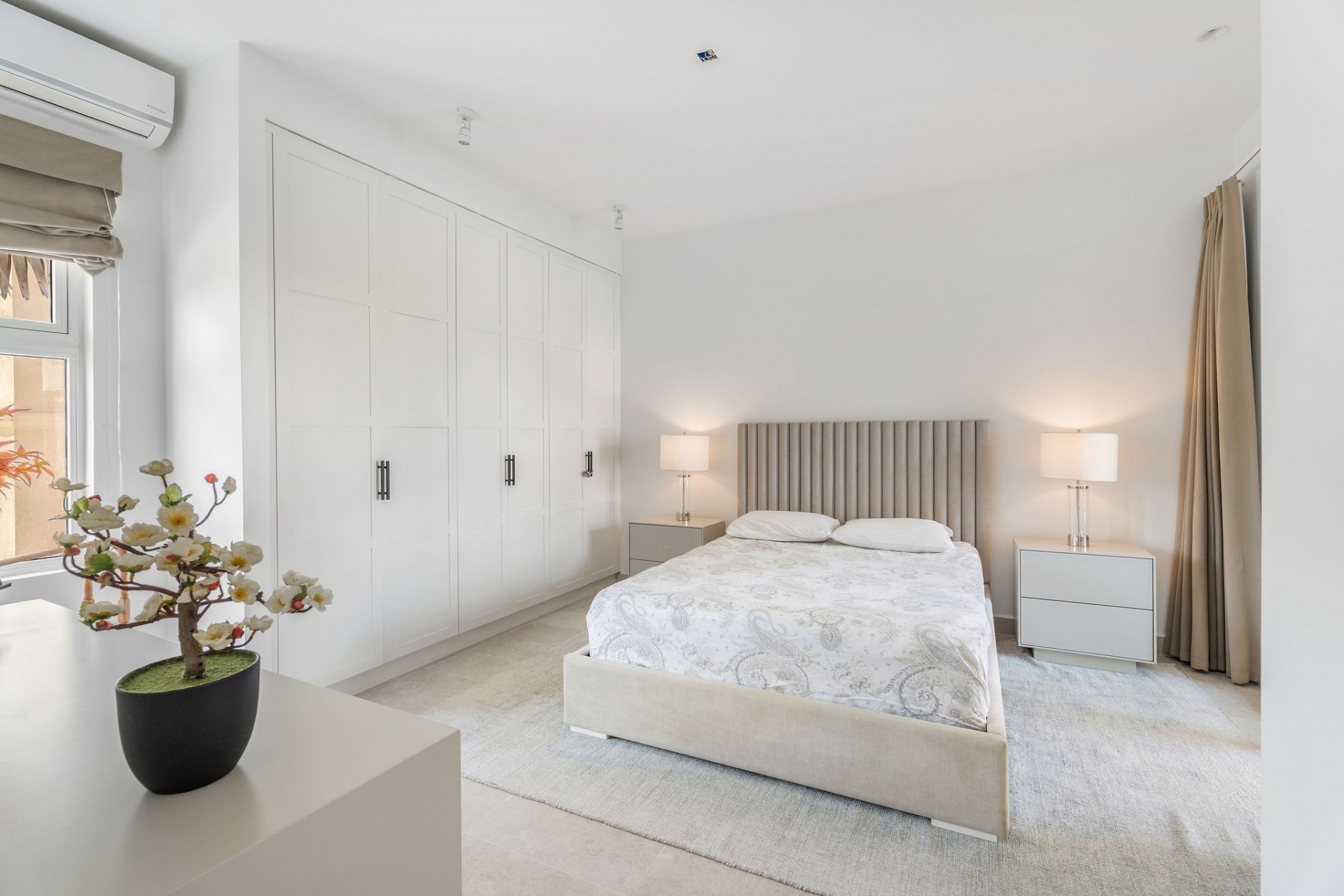 The master bedroom features a high ceiling, an en-suite bathroom, and direct access to the garden patio through its own sliding doors, creating a private and serene retreat. The two additional bedrooms are equally well-proportioned, bright, and inviting, making the home perfectly suited for family living, guests, or a combination of personal use and rental potential.