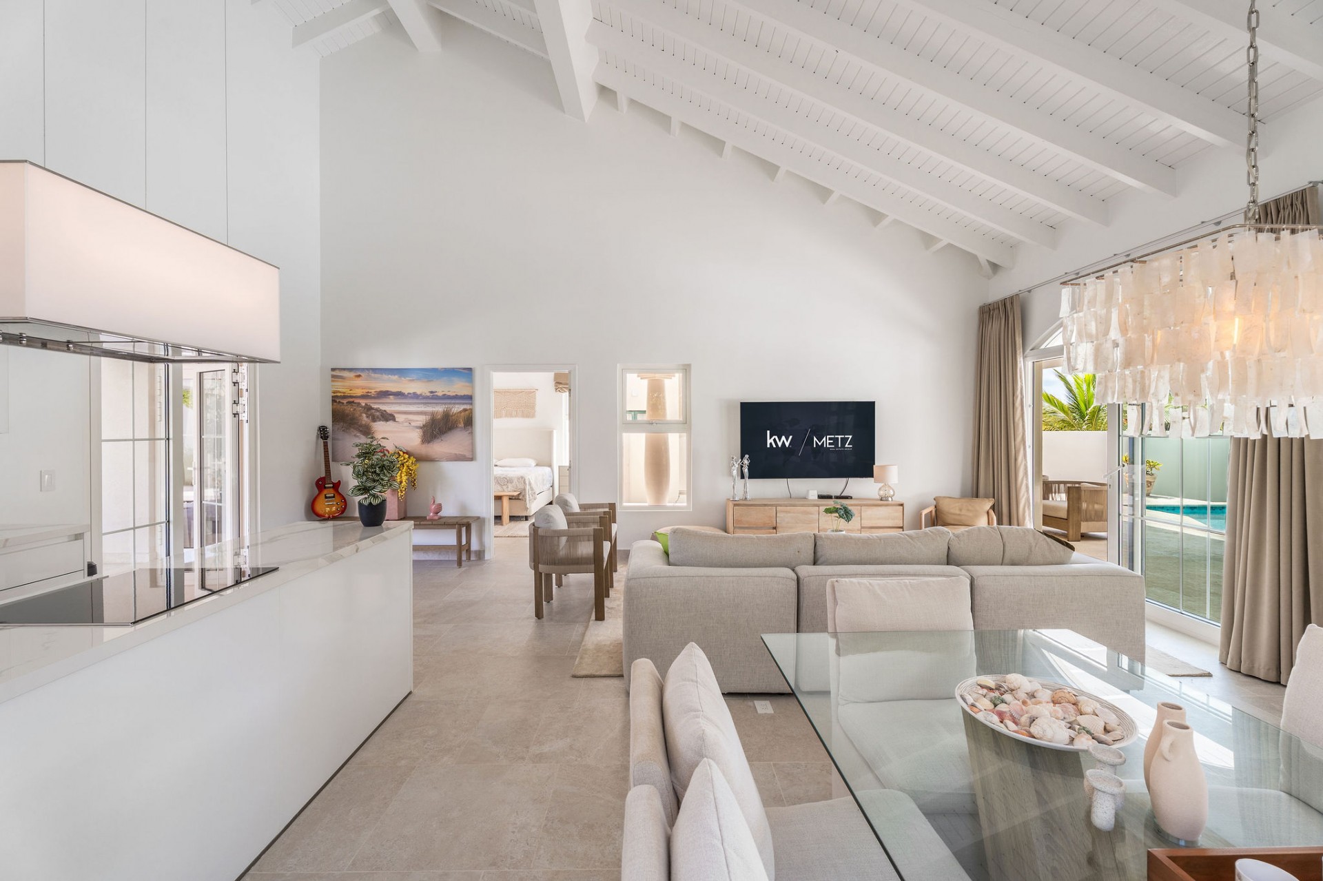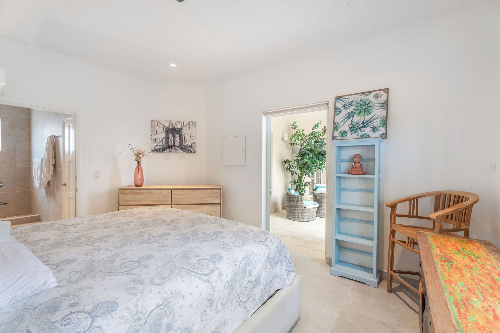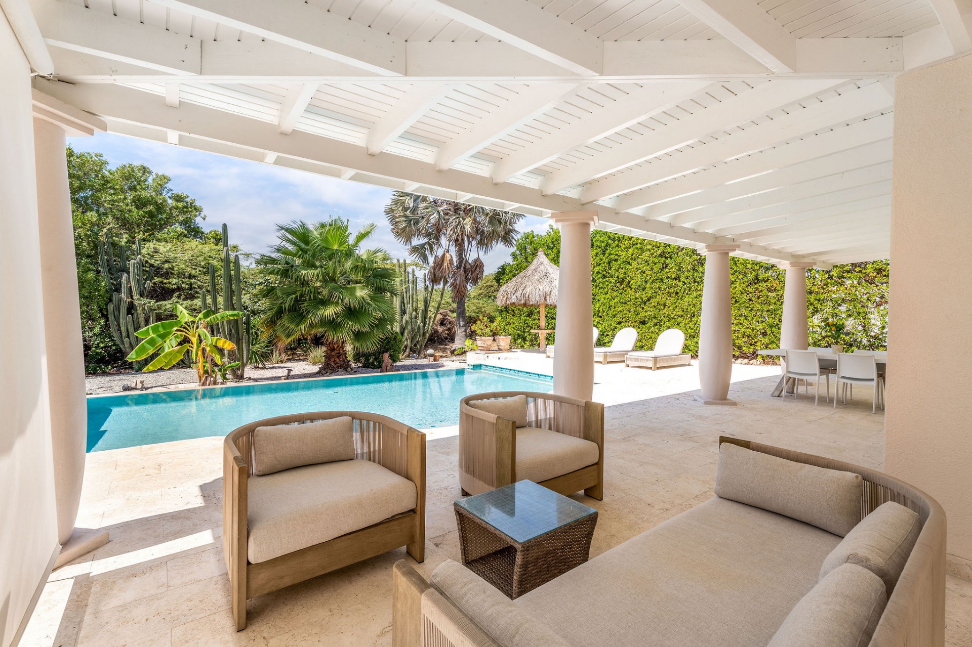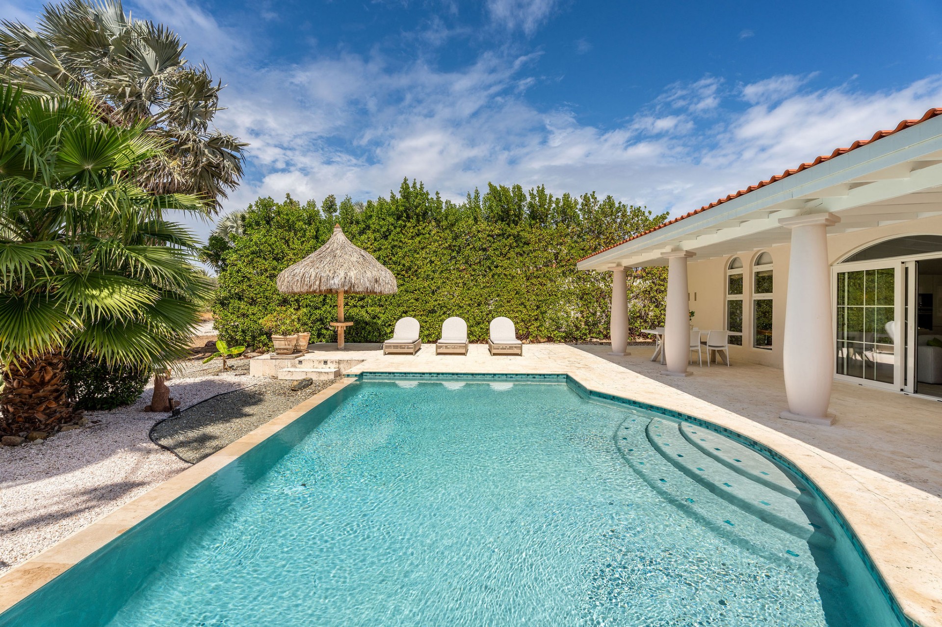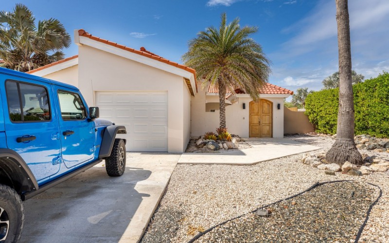 The outdoor living spaces are where this property also truly shines. The garden is a tranquil oasis, thoughtfully landscaped and surrounded by greenery, offering multiple seating and relaxation areas. A spacious covered porch provides the perfect setting for outdoor dining or lounging, while a charming palapa invites you to unwind in the fresh Caribbean breeze. Natural stone flooring throughout the outdoor areas enhances the spa-like ambiance, making this home ideal for both entertaining and everyday relaxation. A great addition to this beautifull property is the 2 car garage, both for storage and perfect to park indoors.