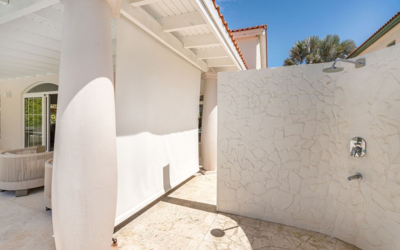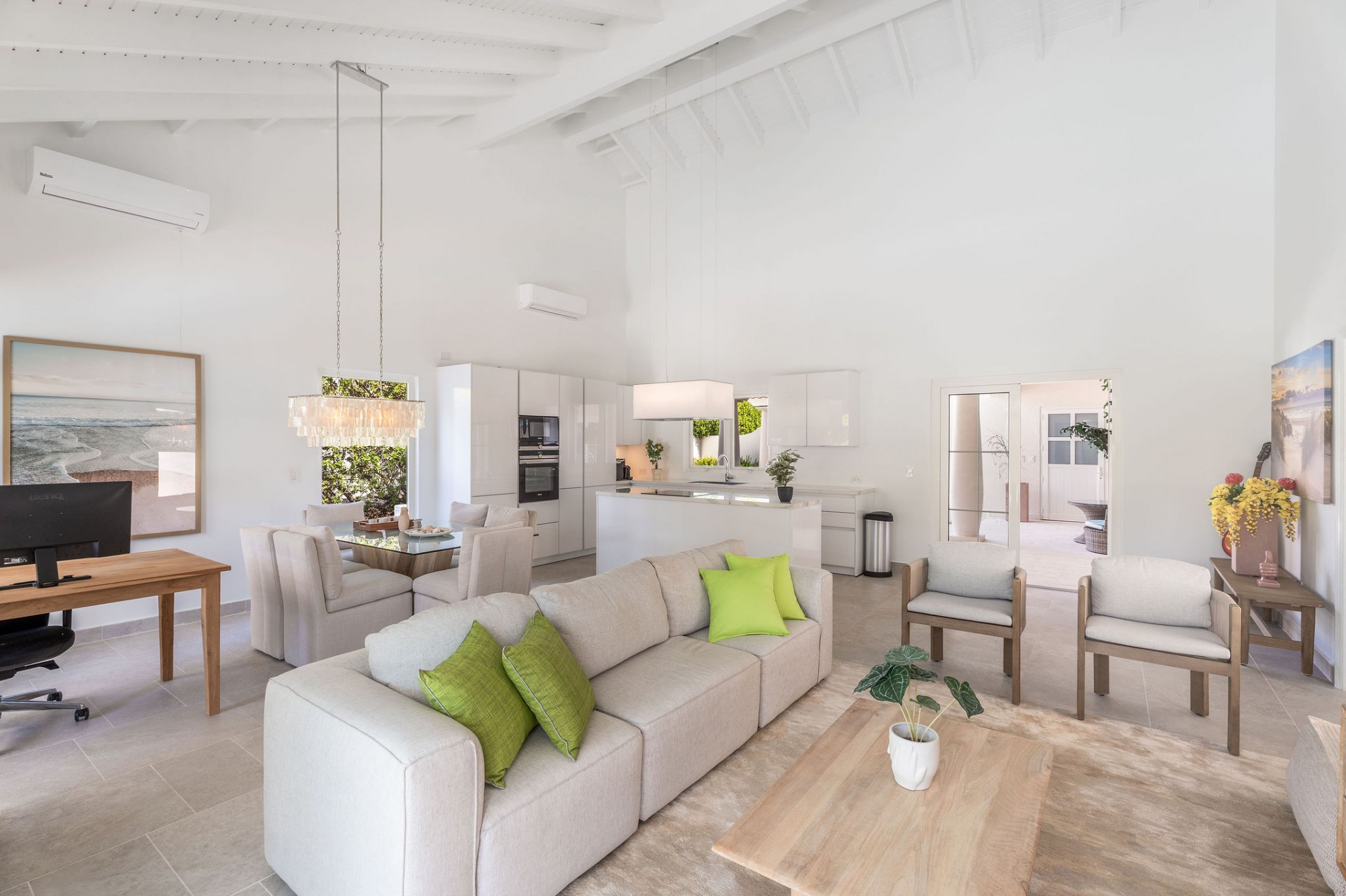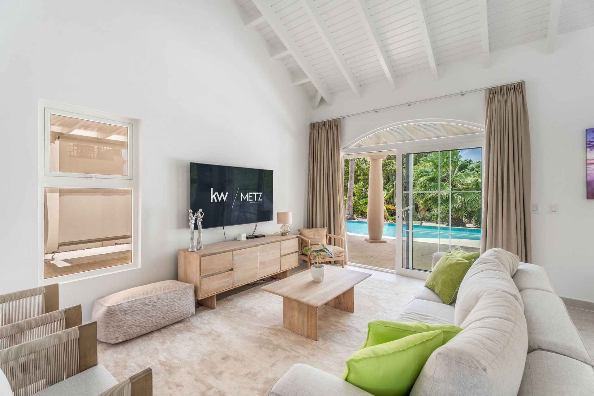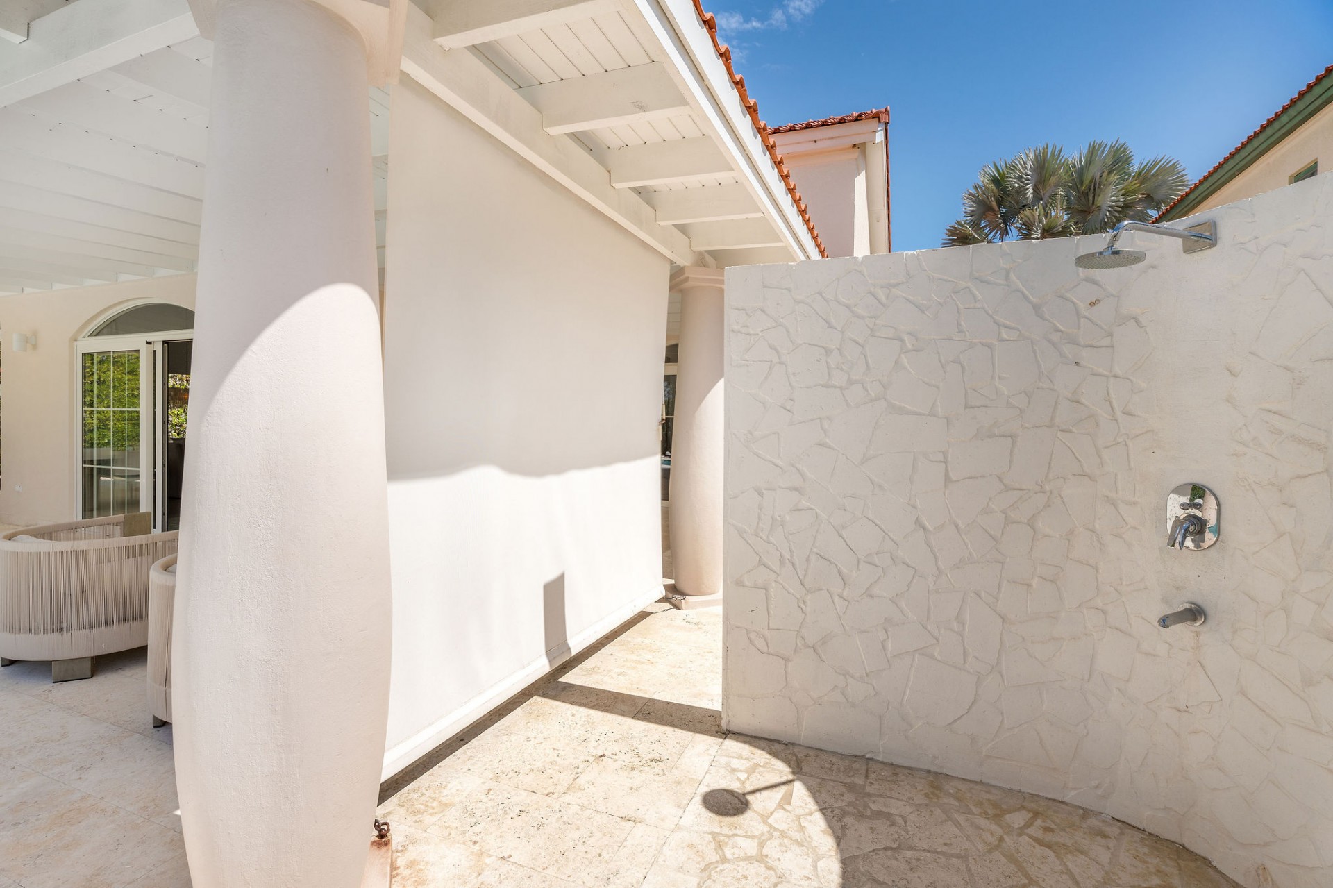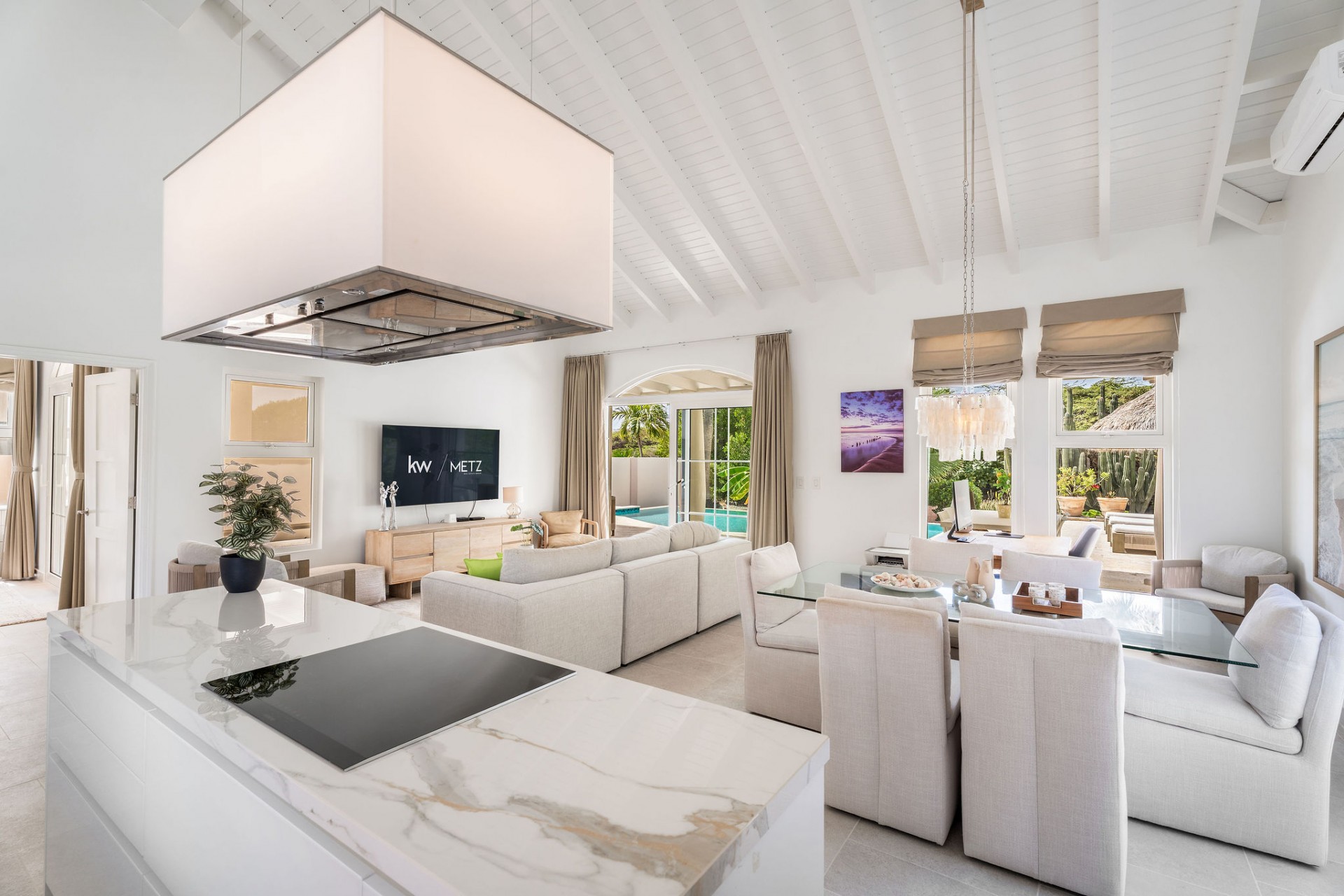 The outdoor living spaces are where this property also truly shines. The garden is a tranquil oasis, thoughtfully landscaped and surrounded by greenery, offering multiple seating and relaxation areas. A spacious covered porch provides the perfect setting for outdoor dining or lounging, while a charming palapa invites you to unwind in the fresh Caribbean breeze. Natural stone flooring throughout the outdoor areas enhances the spa-like ambiance, making this home ideal for both entertaining and everyday relaxation. A great addition to this beautifull property is the 2 car garage, both for storage and perfect to park indoors.