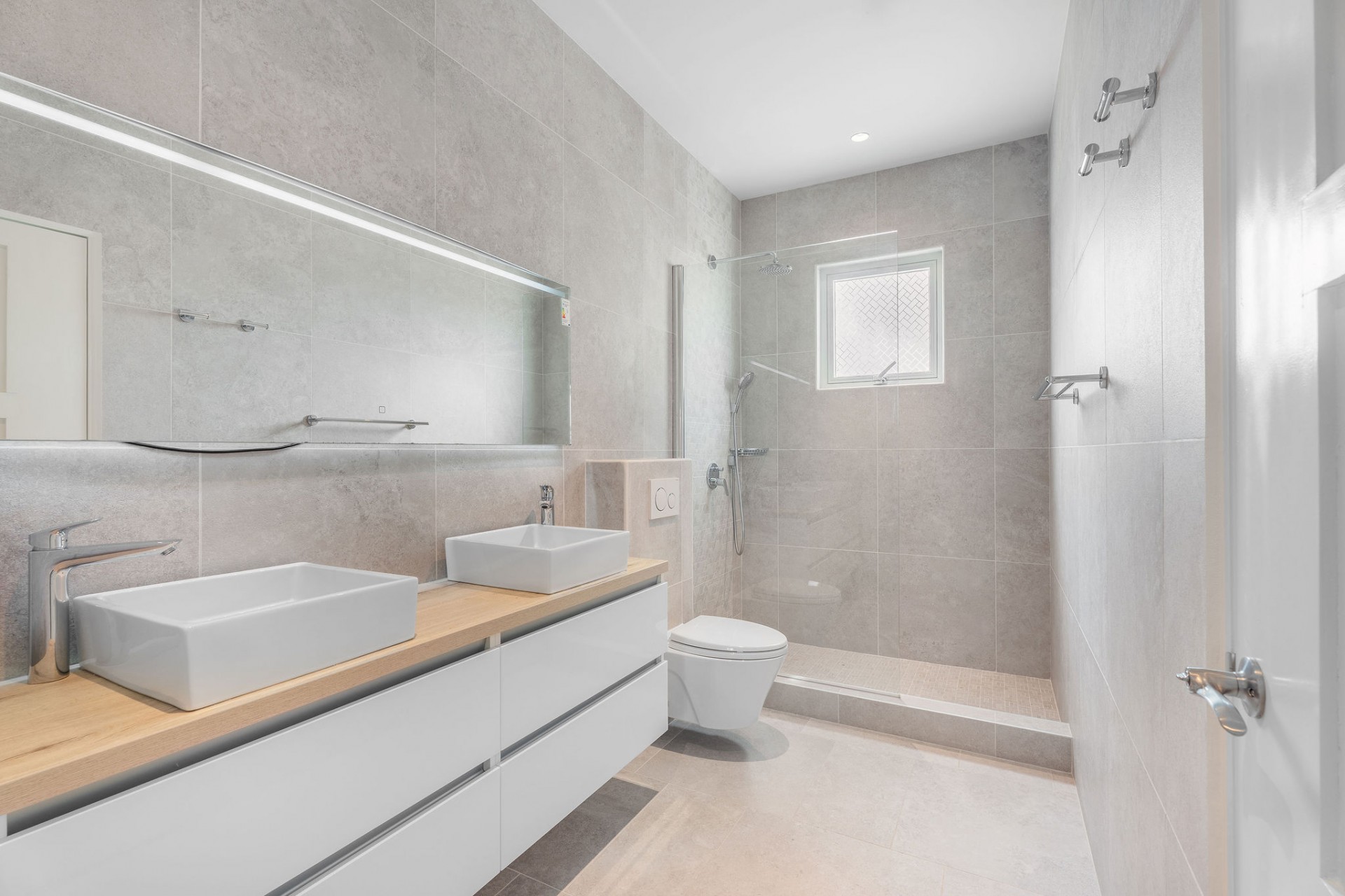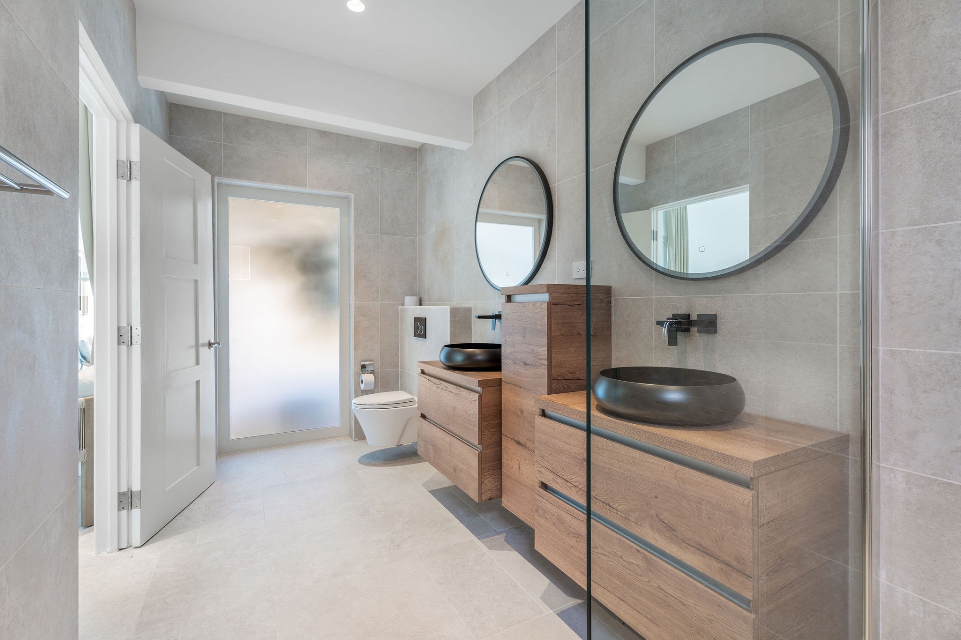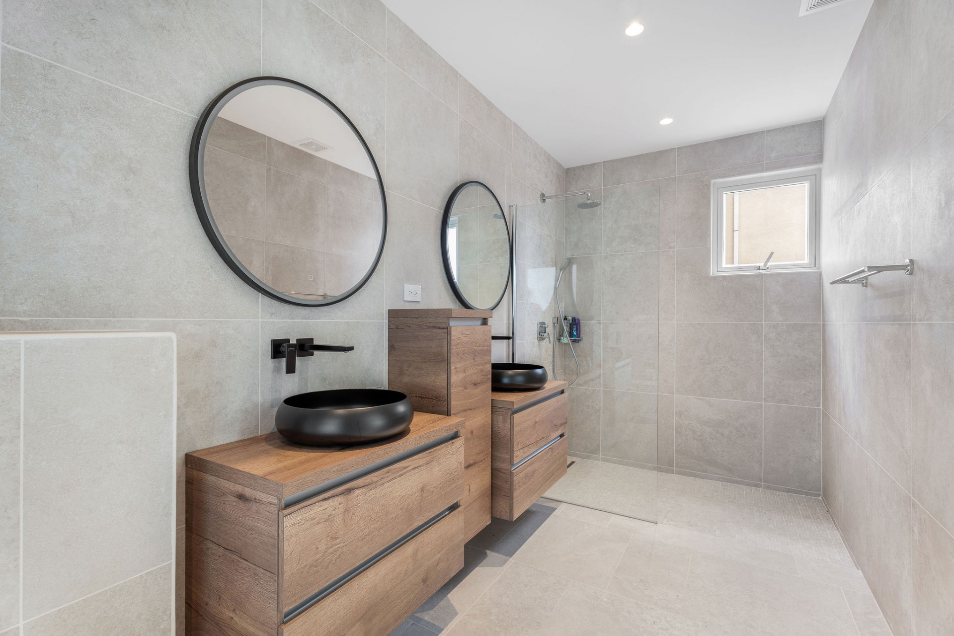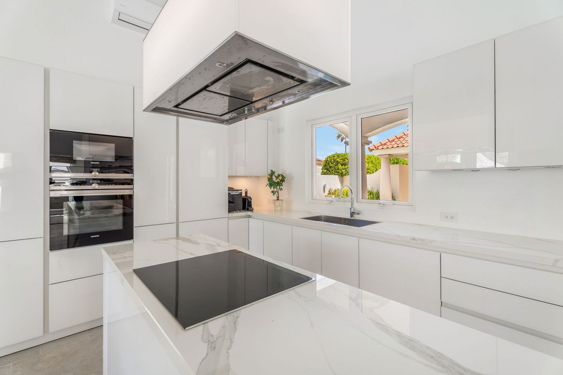 The living area is complemented by a stunning, modern kitchen, designed with clean lines and contemporary finishes. Thoughtfully positioned as part of the central living space, the kitchen offers both functionality and style, making it ideal for both everyday living and entertaining guests. Its modern design blends seamlessly with the home’s airy layout and strong indoor–outdoor connection.